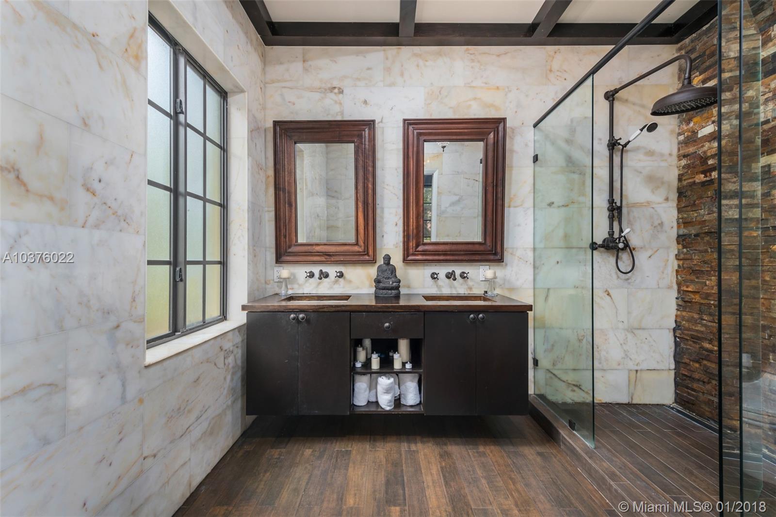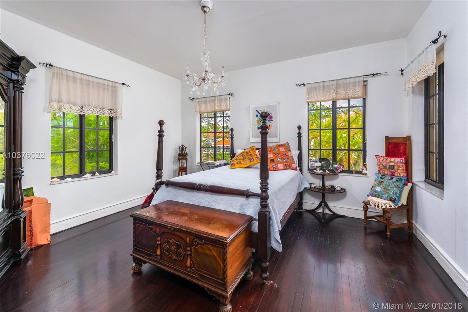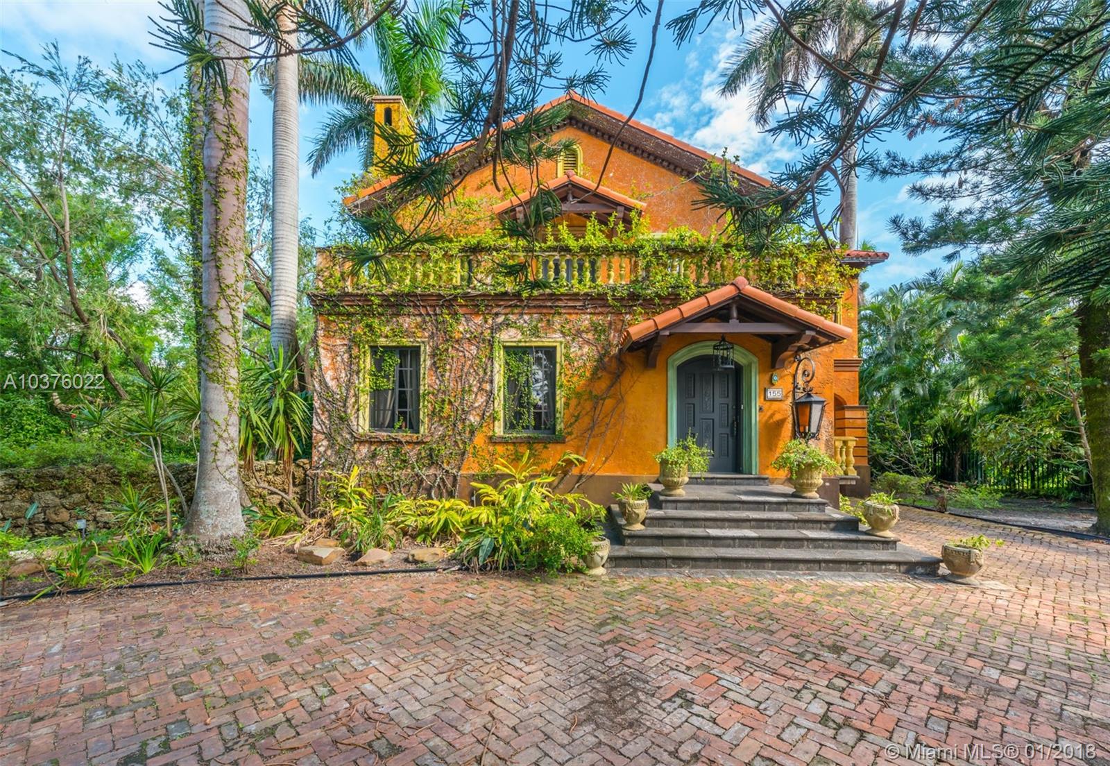 Historically designated estate with approx. 100 linear feet of water frontage, deep water dockage and direct bay/ocean access. Built in 1927, this extraordinary Mediterranean estate is located on 15,000 sqft of land. Home features 4 bedrooms, 2.5 baths plus a 1BR/1BA guest house with living room and recreational space, hardwood, slate and tile floors. Kitchen w/granite counter tops, working wood-burning fireplace, wood beamed ceilings, original plaster walls, large pool, patio & terrace, old Chicago brick driveway and pool area. Generator and small basement. Sold "AS-IS". Low taxes due to historical designation. Move in ready or update to your specific requirements. Excellent Value!