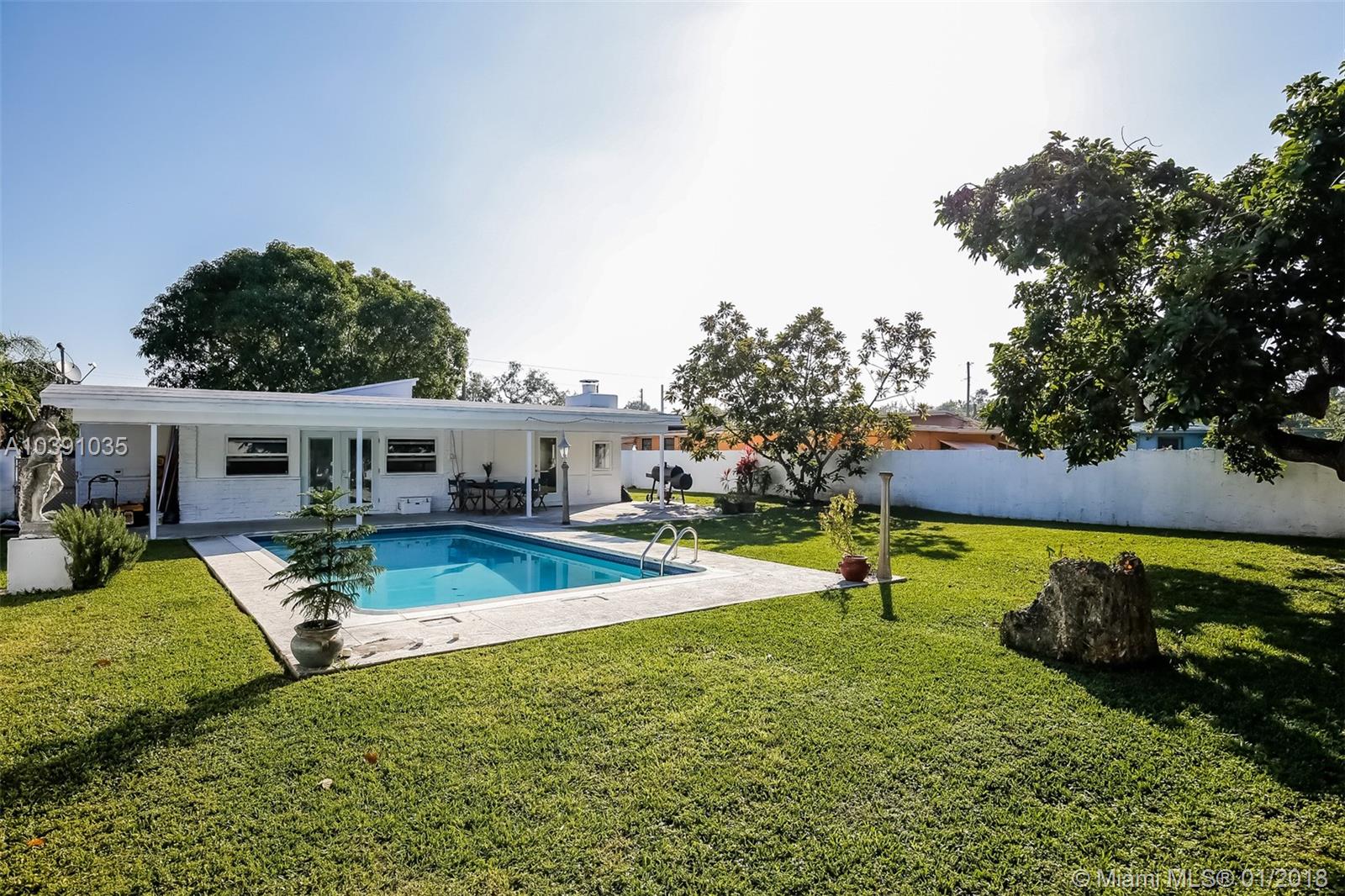 Beautifully updated pool home in South Miami close to transit, shopping, restaurants and schools. This 3 bedroom, 2 bath home offers a new roof, new A/C, hurricane impact windows, new bathrooms, new kitchen with island, granite countertops and new stainless steel appliances and inside laundry room. The open floor plan allows natural light to flow through the entire home. The huge walled-in backyard (10,800 sqft.) offers a pool, covered patio, garden shed and fruit trees. This home is turn-key.