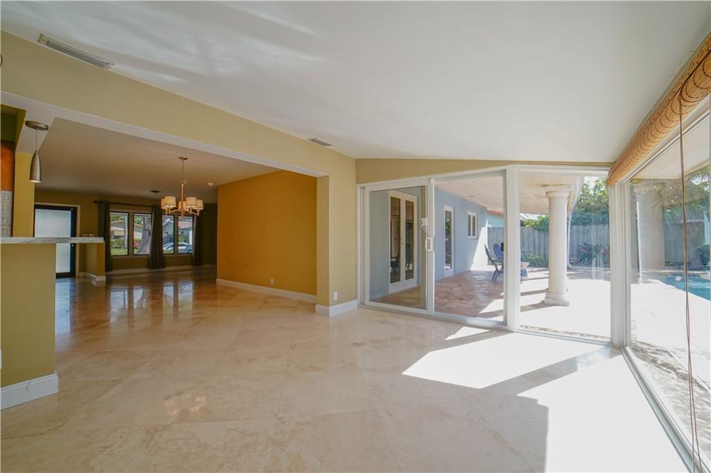 Move-in ready pool home with designer finishes. Located in Coral Highlands, just south of Imperial Point, this 3 bedroom/2 bath has an open living, dining and Florida Room for gracious entertaining. Eat-in kitchen has stainless steel appliances and quartz countertop. Highlights include impact windows and doors, Travertine floors in public rooms, and hardwood floors or carpeting in bedrooms. Backyard features a heated, saltwater pool; covered lanai and spacious Travertine patio.