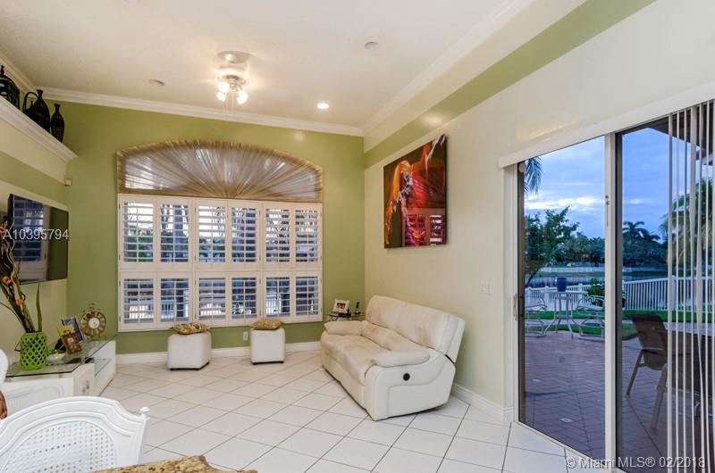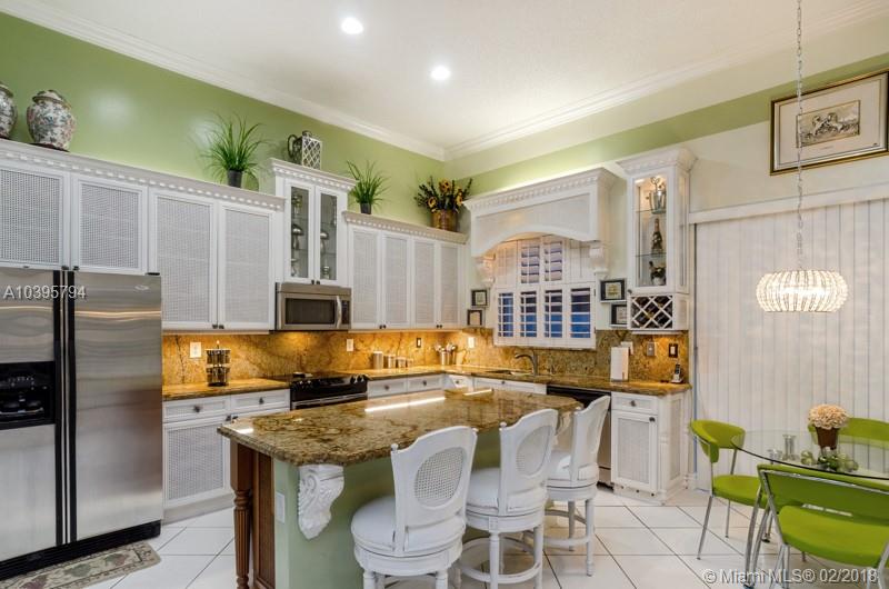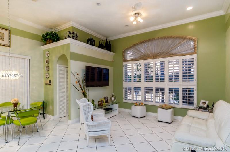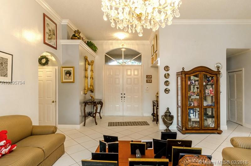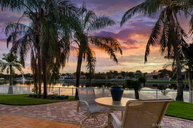 Absolutely gorgeous!.. Hurry up before someone scoops it up. One story, tile flooring, accordion shutters, new high efficiency A/C, new washer and dryer, upgraded kitchen with marmol countertop, crown moldings all over. Remodeled master bath with jacuzzi. Template shower and bidet, intercom, alarm, sprinklers, bahama shutters, garage faucet and door to exit plus tile and attic too. The best part is the spectacular view of this magical lake, fenced. You will love it. Chandeliers and Furniture are negotiable.