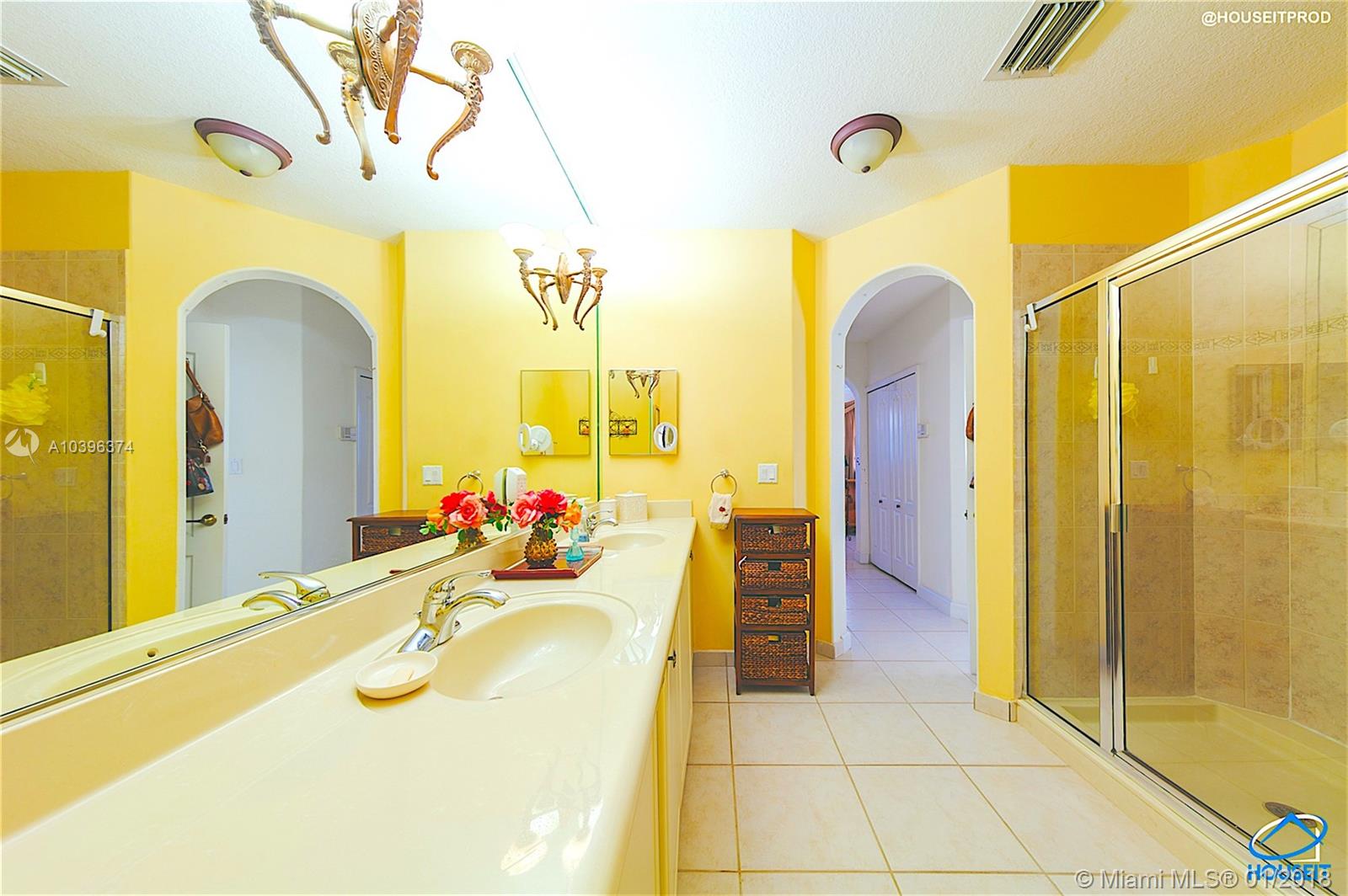 Great corner townhouse in Las Cascadas that feels like a single family home and offers plenty of privacy. This home has been impeccably maintained by it's current owner. Three bedroom plus den with almost 2300 sq. ft. With this layout you can easily enclose the den area and turn it into a fourth bedroom. The rear sliding glass doors have been replaced with elegant french doors that let in plenty of natural light. Accordion shutters throughout with Lush landscaping in backyard. Largest three bedroom floor plan in the community. Las Cascadas is a gated community with a pool. The backyard is excellent for entertaining, large two car garage. Original owner of home since it was purchased new. Very low HOA, never leased out, always well taken care of. Priced to sell, a true gem in Doral.
