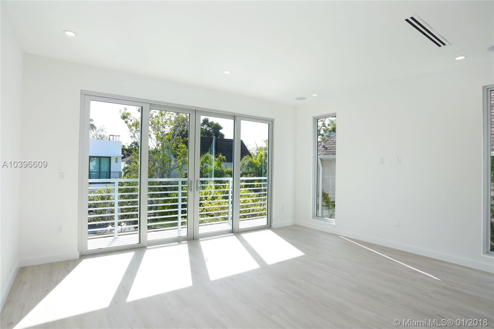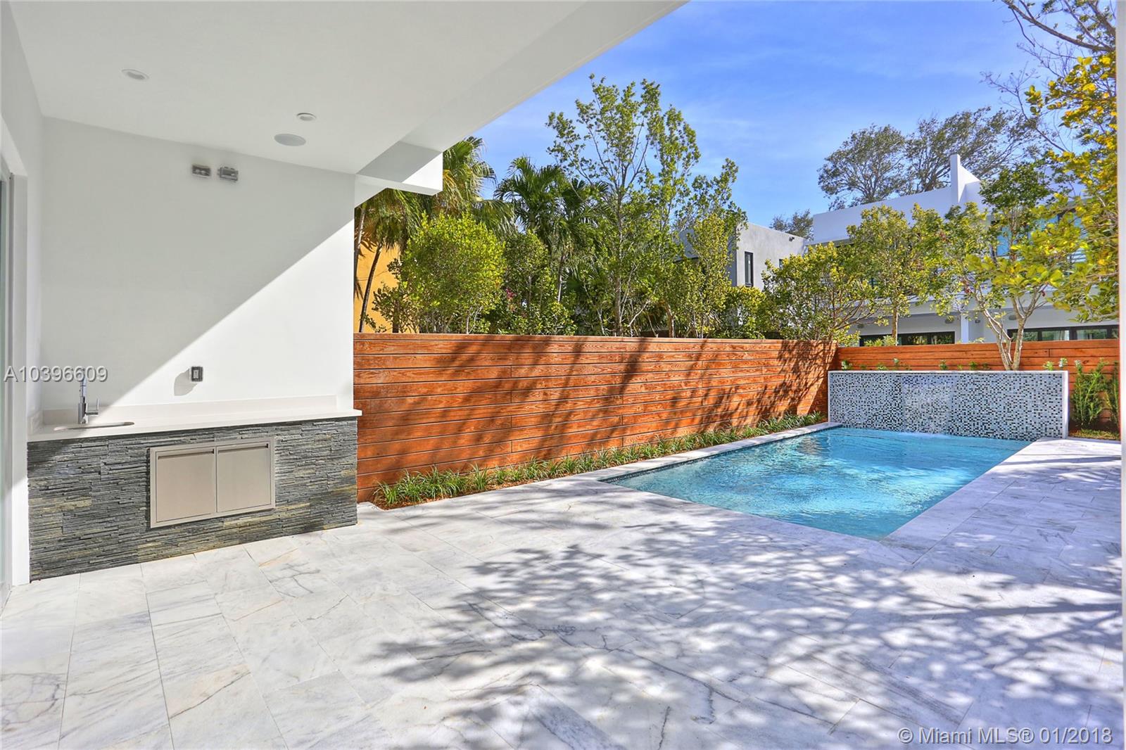 Brand new, contemporary town home with high end finishes. Four light filled bedrooms, three and a half baths. High ceilings on both floors. Porcelain wood tile throughout. Solid construction with concrete roof and concrete decking for the second floor. Finished floors in the garage and natural light through window. Top of the line European style cabinets. Bosch appliances. Over 30 feet of kitchen cabinets and counter. Gas cook top, water heater and dryer. LED lighting. Built in sound system. Expansive back yard with 10X20 pool that has a water feature. Two master bedrooms on the second floor, set up as split floor plan. Two more bedrooms with Jack & Jill bath. Easy walk to Downtown Coconut Grove, local restaurants, parks, shopping. Located at high elevation, not a flood zone!