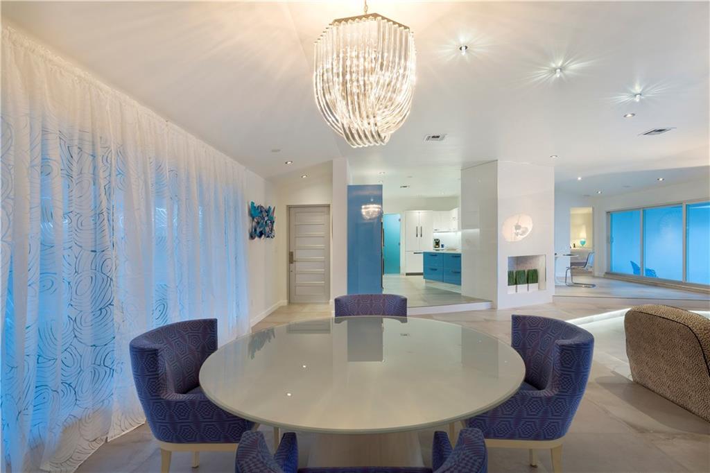 Designed for indoor/outdoor living, the easy single-level floor-plan totals 3,165+/- square feet with three bedrooms, four full baths, and a two-bay garage. Notable construction features include the newly sealed and painted cast concrete roof and new impact-rated PGT windows and exterior doors. Floors in the main living spaces are of Porcelanosa tile, with restored original terrazzo floors in the bedrooms, and specially designed LED lighting throughout.