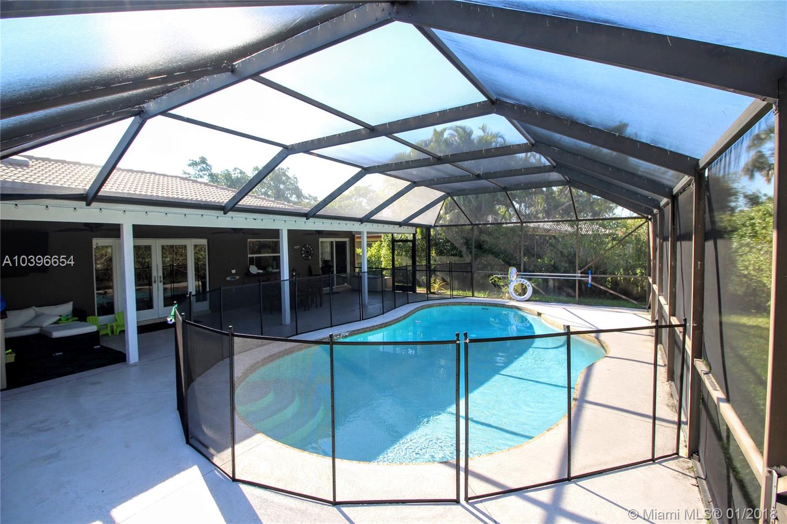 The home that has it all. Fully renovated home with 4 bed/2 bath + 5th room/Den/Office. Fully hurricane protected (impact windows, doors & garage). Open concept from the living room to dining room flowing into the kitchen & setup perfectly for entertaining family and friends. The large back screened patio is perfect for entertaining rain or shine with large roof covering and plenty of room for seating. Newly installed pool heater, newly installed sprinkler pump system, newer water heater, crown molding throughout home for that extra interior finish. Open kitchen w/island and hooded vent system, which is chefs paradise. This home has it all with no neighbors behind you. Walking distance to schools & park down the street. Close to shopping,restaurants, & highways for easy commute.