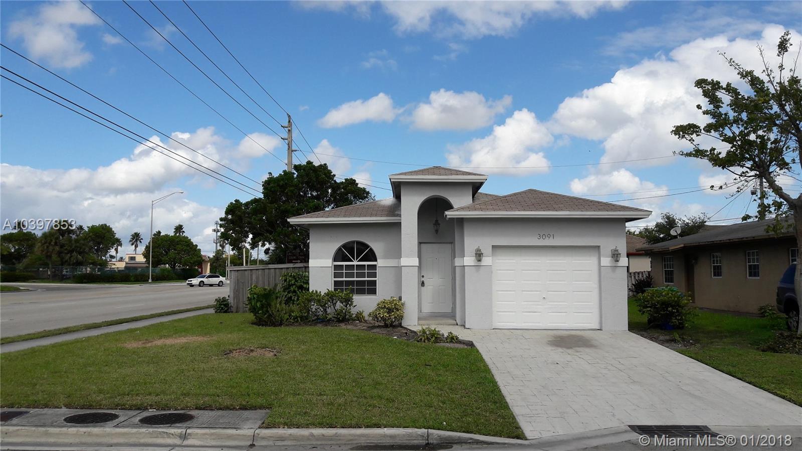 3/2 Corner home, 1880 sq ft, build in 2007, big and bright rooms,2 full bathrooms with tub,beautiful kitchen with granite counter top , laundry room with washer and dryer,porcelain and wood floors, hurricane shutters, big garage,Fresh interior and exterior paint,close to school, ready to move in.
