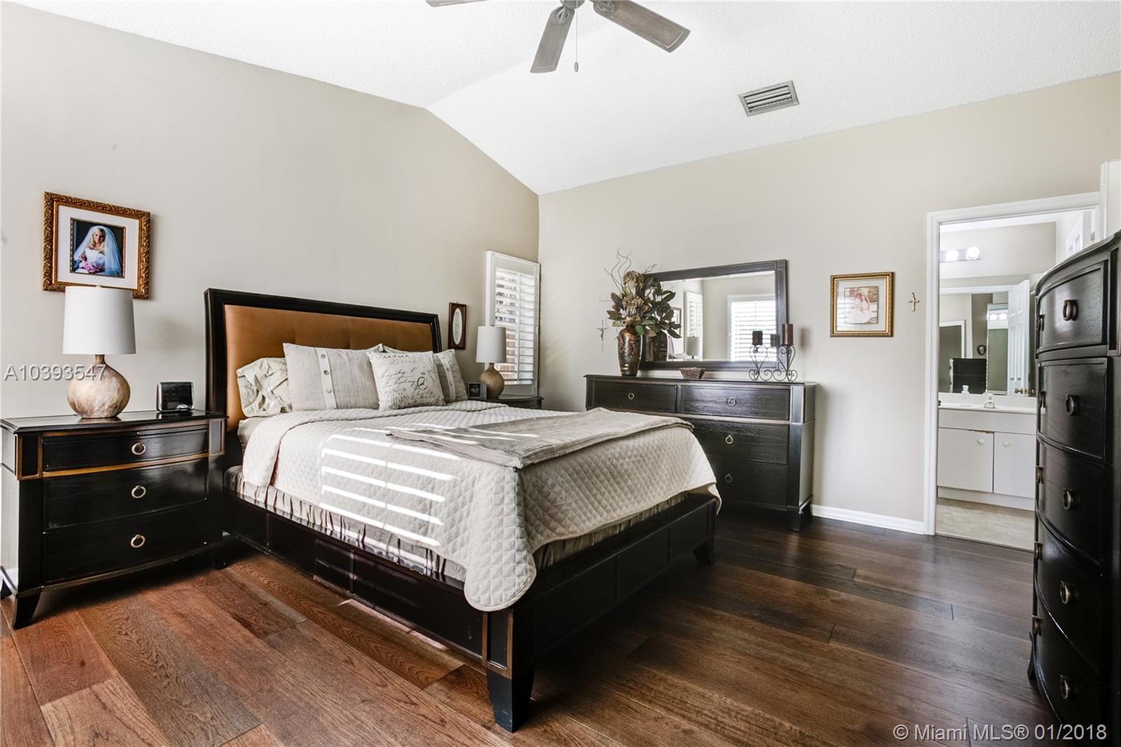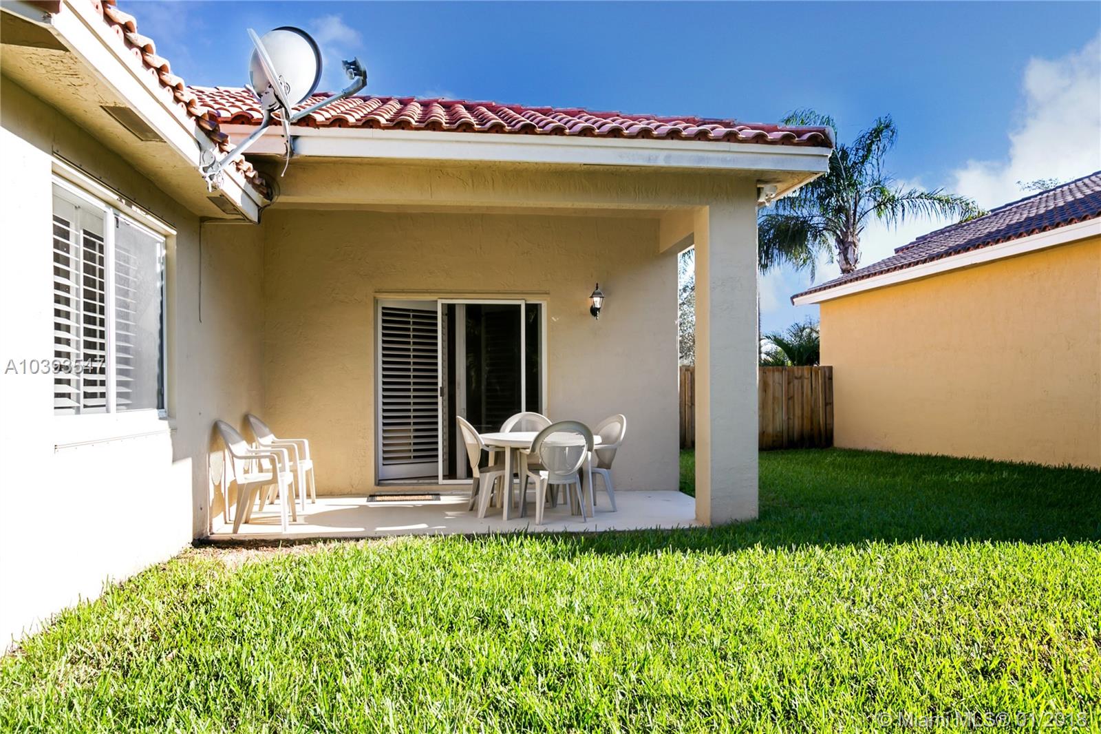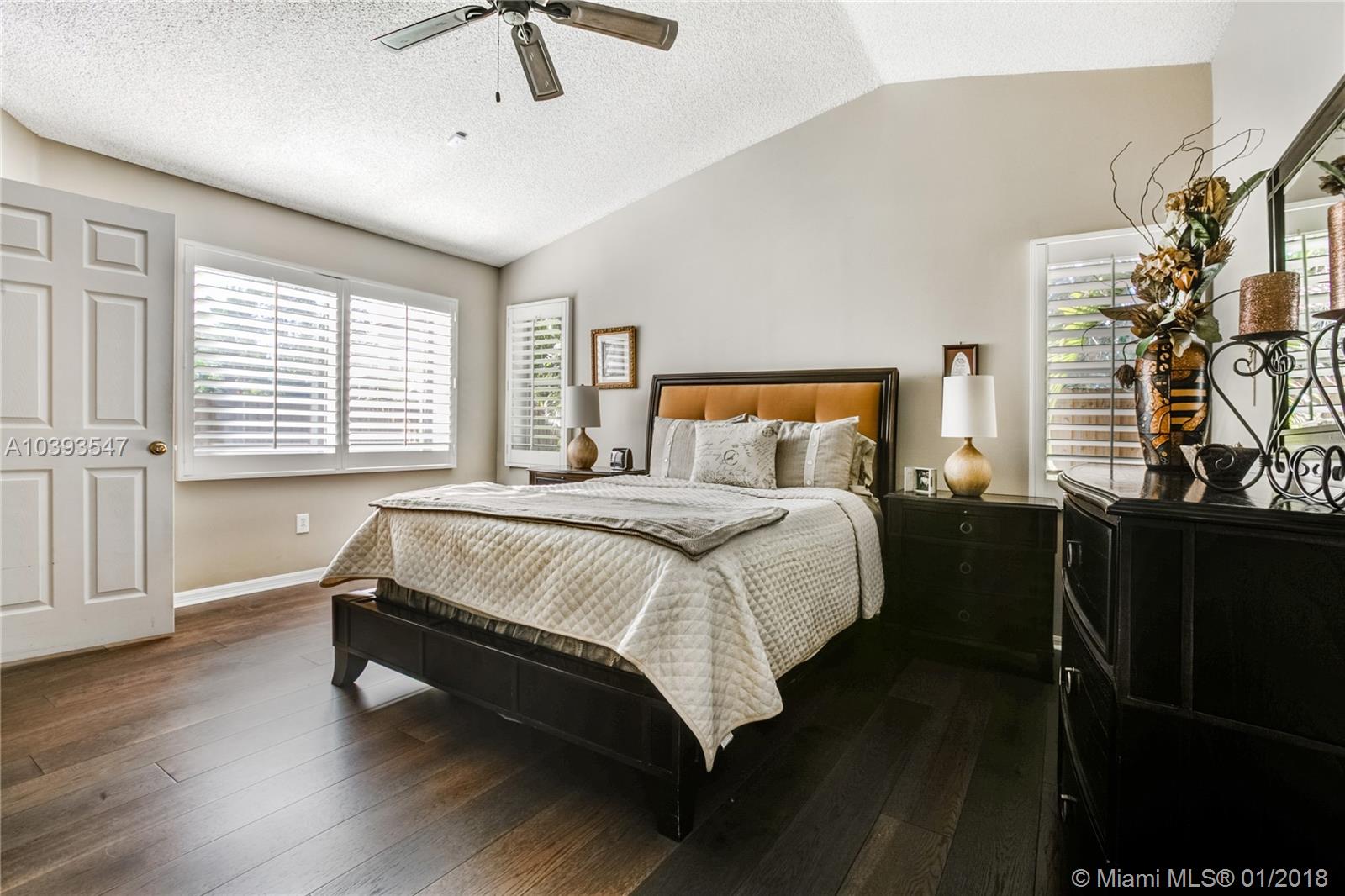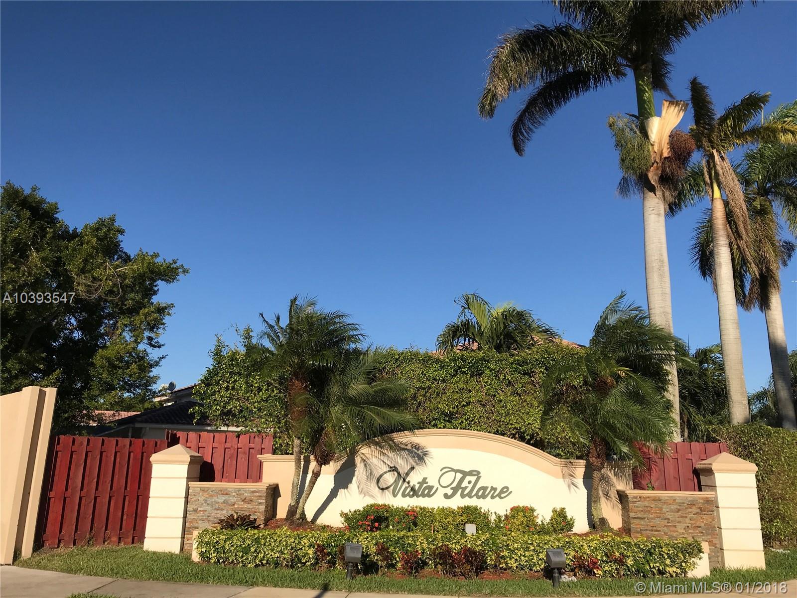 Spacious and light filled 3bed/2bath home in very desirable family community of Vista Filare. Amazing location with quick access to Miami, Palm Beach and downtown/beaches, places of worship, hospitals, social and sporting events via I-595, I-75 and Sawgrass Expressway. Fenced with room for a pool and hurricane shutters. Remodeled 2-car garage with beautiful flooring, custom cabinetry, lots of storage, and TV. Interior features include open kitchen with breakfast nook, Plantation shutters, wood and vinyl flooring, custom designed closets all rooms, and a Vivint smart home alarm system. Master bath remodeled. House recently painted. Fence treated and painted. Newer A/C under warranty. Great schools. HOA only $280.00/quarter.