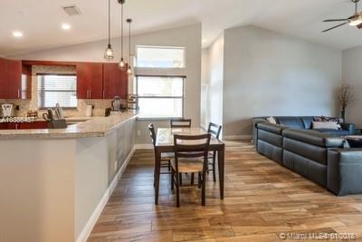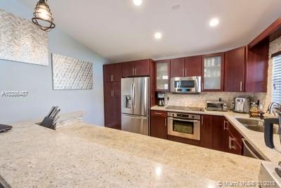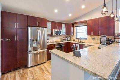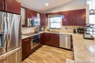 Completely updated and renovated home to fit any style! Porcelain wood tile thruout*Updated kitchen w/Bosch appliances & newer LG fridge*newer LG washer & dryer*XL master bath shower w/6 shower heads, spa rain head, dual wood sinks w/granite tops*2nd bath updated w/ wood cab & quartz countertop*Recently painted exterior & interior*all hi-hats LED*fully fenced yard w/room for pool*extended covered patio*hurricane impact front door & sliding door, the remaining windows have accordion shutters*hurricane coded garage door*6 camera security system*all a/c ducts have been replaced to accommodate larger a/c system replaced in 2013*lush landscaped property, very private backyard! Gutters* paver walkway*This home will not last! Immaculate and immediately available for your buyer!