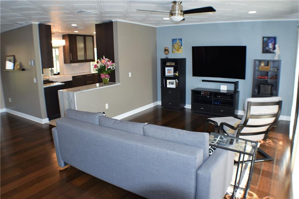 Stunningly remodeled single-story home! Enter into an open living area and modernized kitchen with quartzite counter-tops which waterfall beautifully to the Brazilian wood and sleek tile flooring. Wall of windows gives uninterrupted view of backyard and lake. Garden currently produces mangos, rosemary, and varieties of banana. Soft-close drawers. Split bedrooms. Master en suite and walk-in closet. Too many perks to list! Similar models in neighborhood ADD 1-2 bedrooms. Community tennis ct and two pools.