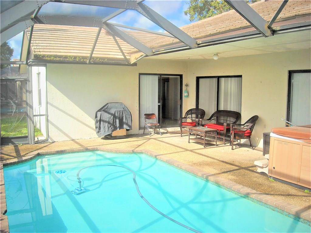 Just REDUCED , Owner says BRING OFFER Lowest Priced 3/2 screened pool with a hot tub Great location No rear neighbors. The bones of this home are solid, roof 2008,Kitchen 2006 A/C and water heater in great condition. Disposal and dishwasher in 2016.New garage doors just installed Both 2 car and side door. All 3 bedrooms and Living room have new carpet. Popcorn ceilings removed to flat smooth ceilings. Interior / Exterior just painted. New sprinkler pump and timer. Ready to move in