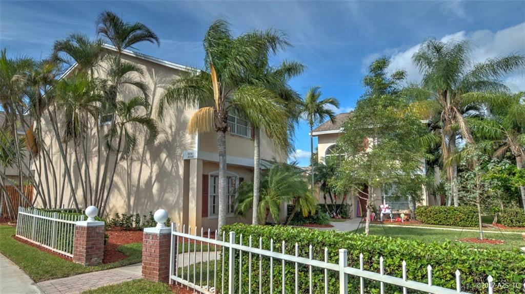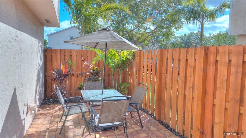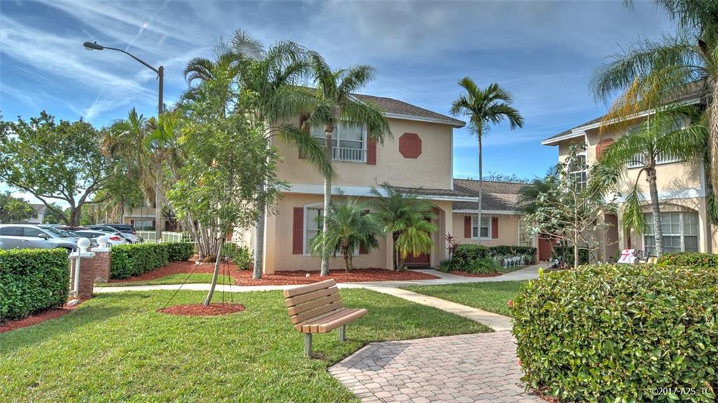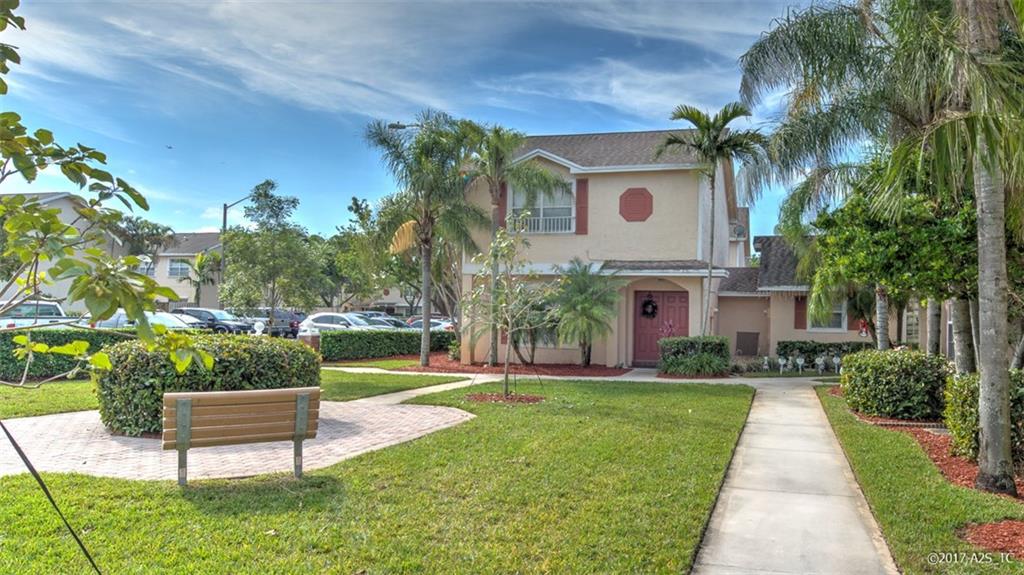 WATCH THE VIRTUAL TOUR – Spacious townhouse in a park like setting with white picket fence surrounding the shared courtyard. Prime corner location conveniently located across from the pool and ample parking. Both bathrooms Remodeled as well as Remodeled kitchen featuring granite & wood cabinets, S/S appliances, washer/ dryer, a/c, even the light fixtures & fans were upgraded in 14. The private patio off the breakfast area was also upgraded. Easy access to Mall, BB&T Center, schools, parks,& restaurants.