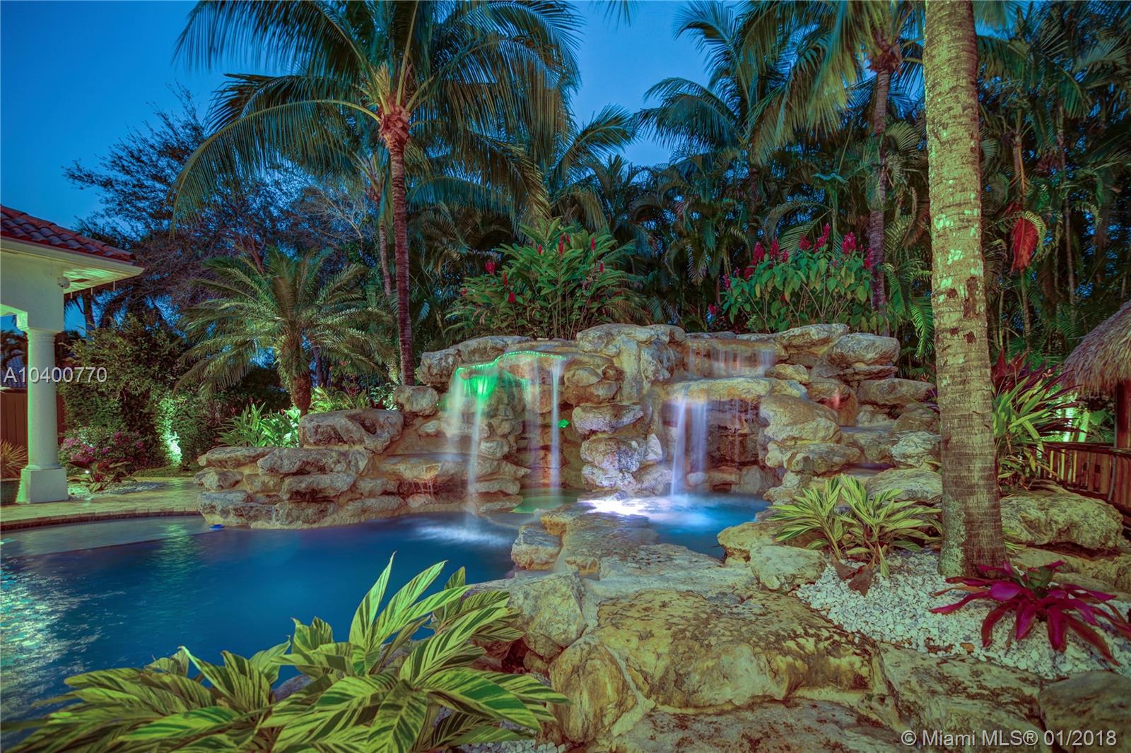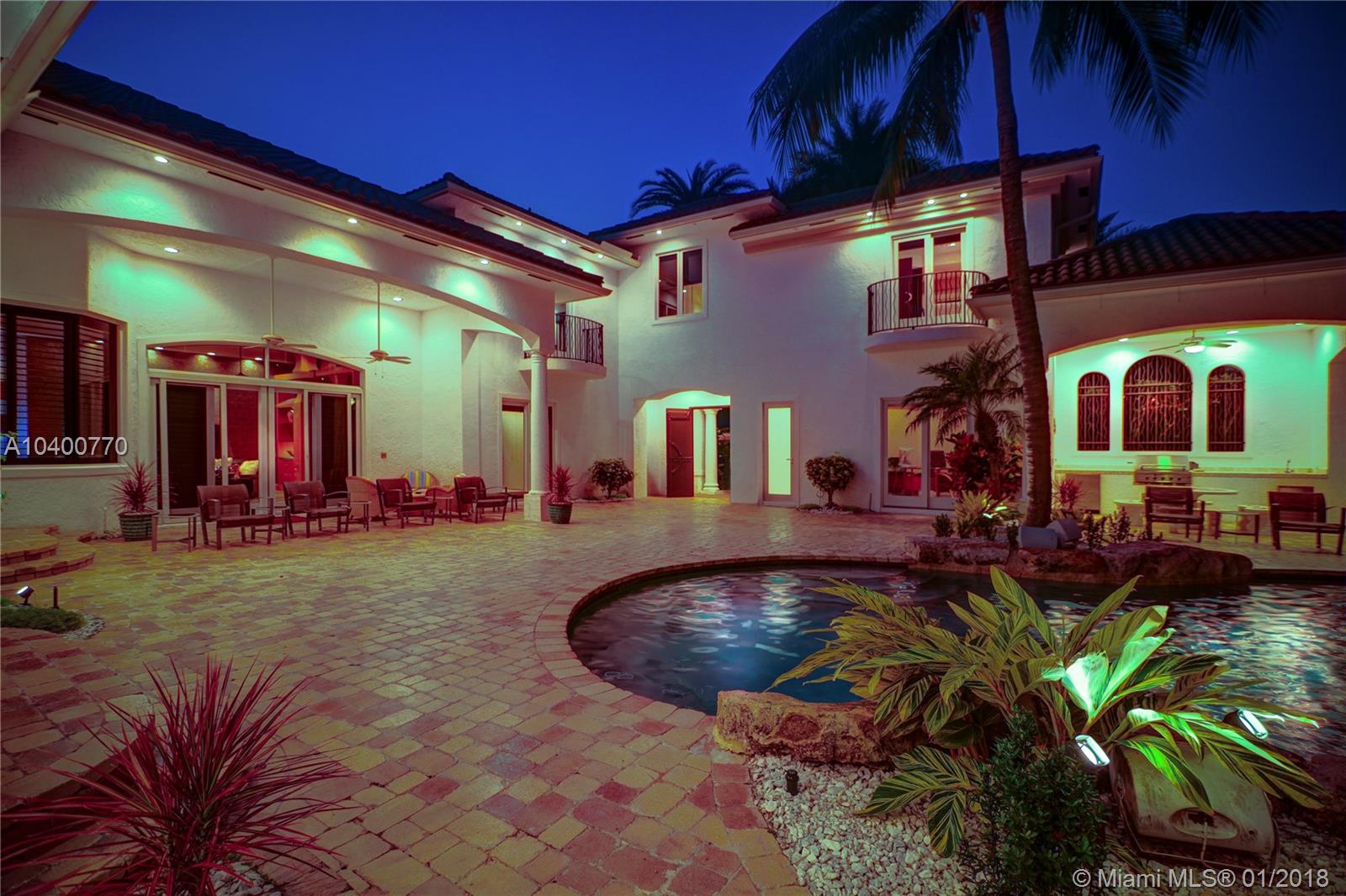 NEW PRICING!Spectacular 6bd./6.5bth courtyard hme run entirely by a Savant Smart Home Technology system.Enter thru your private security gates into Shangri-La.Private oasis sitting on over 26,000 sq.ft. waterfront hme site.The enormous outdr entertainment area features 12ft rock waterfalls,koi ponds & separate Tahitian style pavilion equipped w/built in couches,bar & big screen TV.Newly remodeled kitchn,custom wd, stainless steel & glass cabinets enhanced by new contemporary white glass counters & backsplash.Subzero refrig & Thermador 6 burner gas ck top will help you entertain in style.Impact windows & drs in entire hme.Walk upstairs w/a glass & wd railed staircase to your huge game rm & newly redone home theater.Original owner & strictly used seasonally.Truly your own very private oasis!