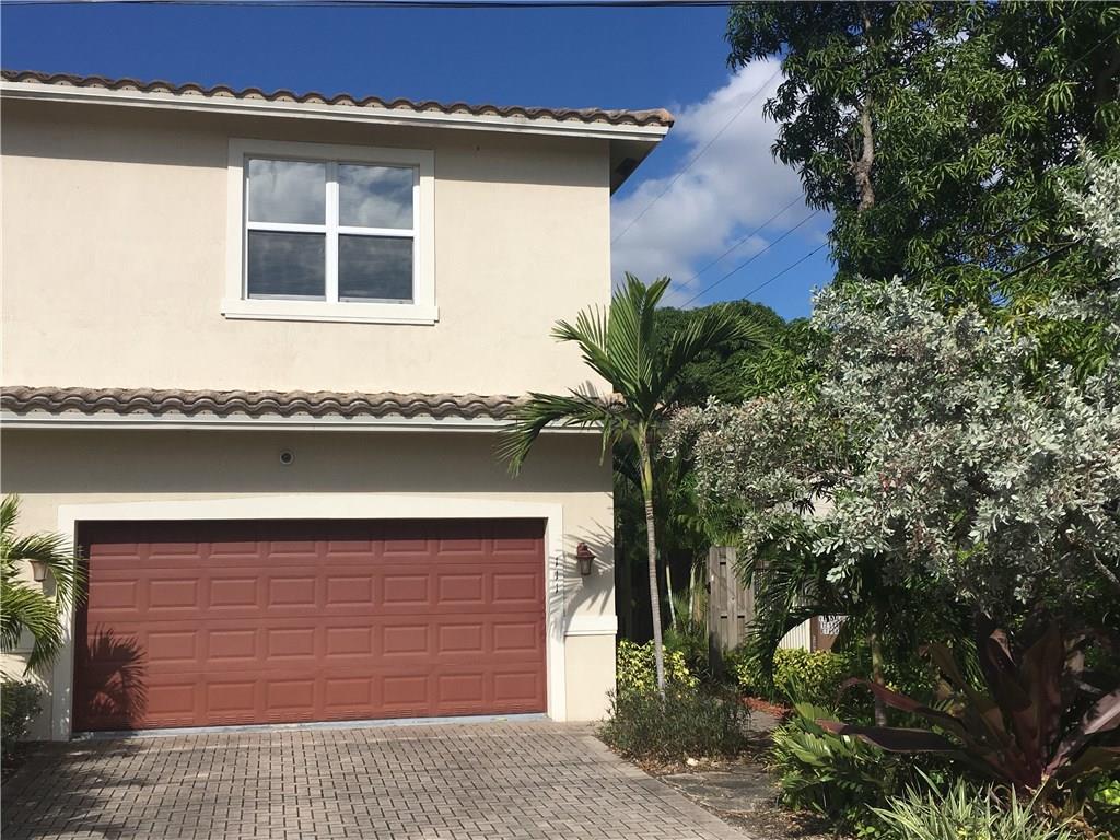 Large, fee-simple twin home located minutes to downtown, I-95, Wilton Drive, and beaches. This 3-bed, 2.5-bath home with separate loft area has an open floor plan with 9.5 ft ceilings. It features impact windows; 2-car garage; W/D; security system; 2-zone A/C; ample storage; eat-in kitchen with stainless appliances and granite countertops; separate dining room; and a large living room with french doors leading to a lush garden patio. Fenced property has tropical landscaping requiring minimal upkeep.