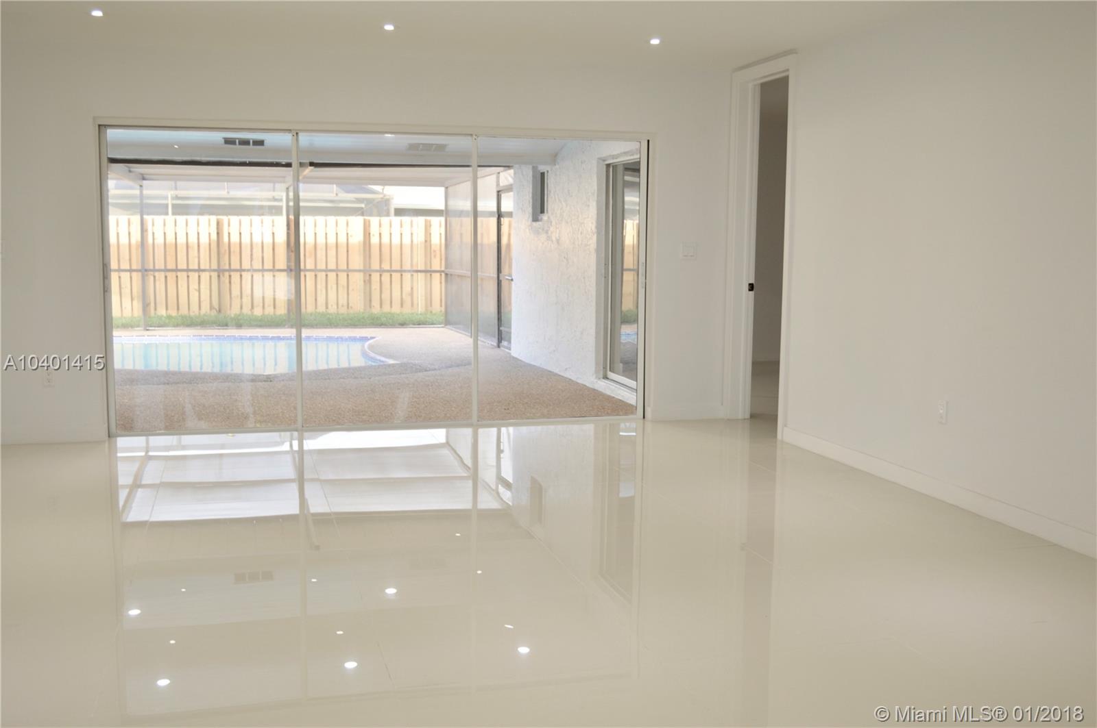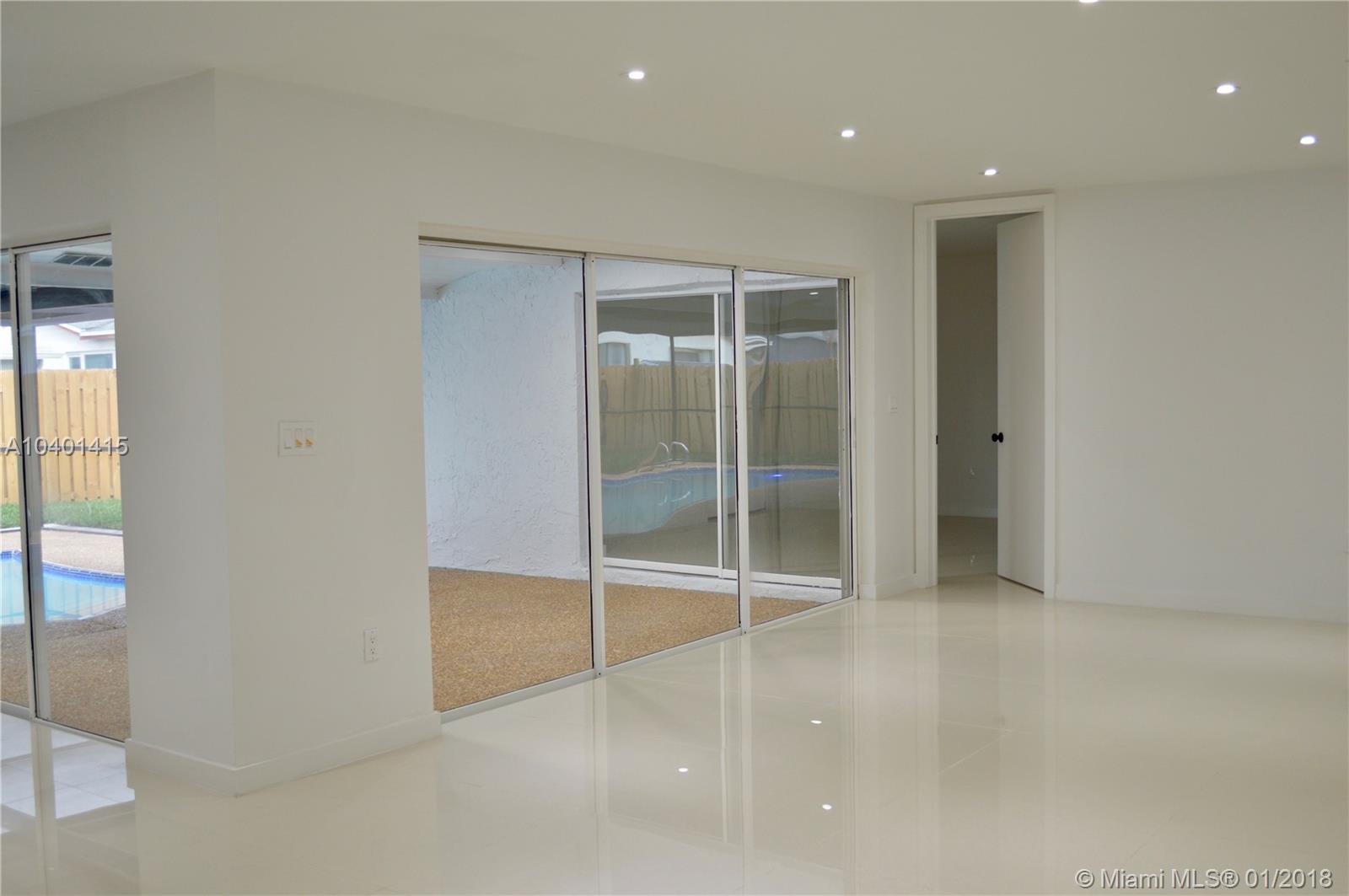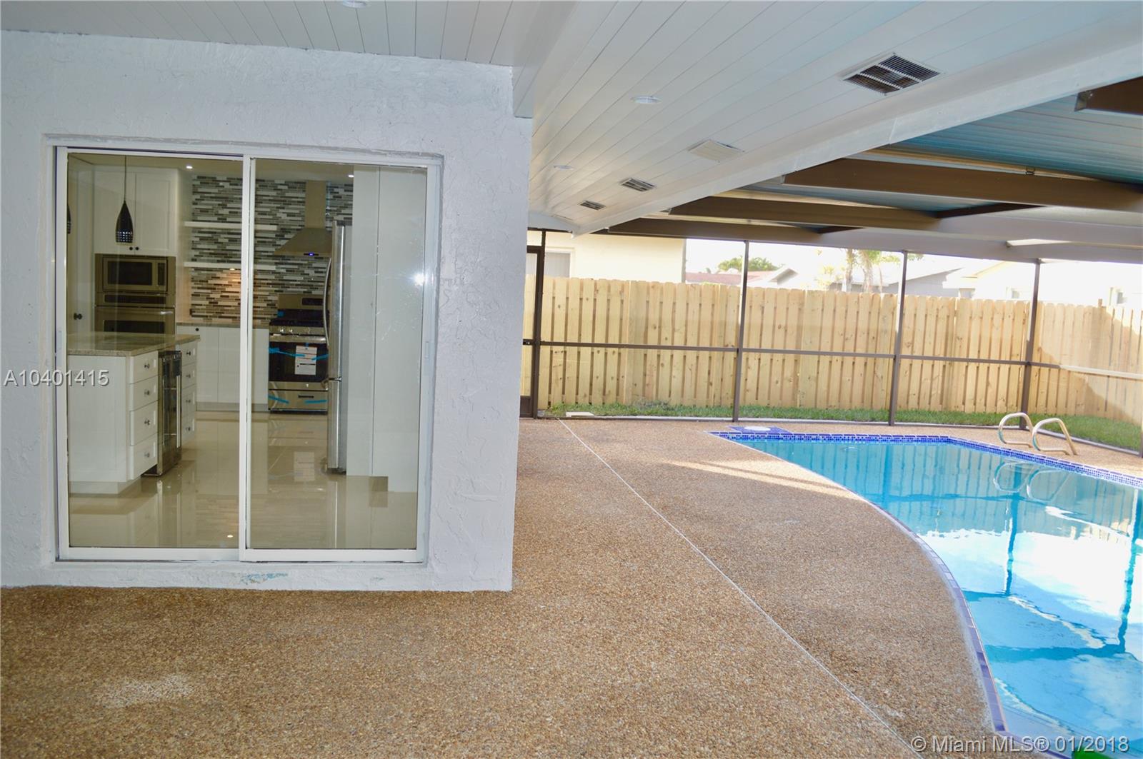 SPECTACULAR!!!! Single Family Home in the beautiful city of sunrise, near parks, and mall. With a Unique split floor plan, beautiful porcelain floors thru out the entire home. Master bedroom with pool view, spacious walking closet, and convenient double sinks in MB. Pool is completely renew, Energy saving Impact Windows, and LED Lights thru out home, kitchen has all stainless steal appliances, 2 ovens, dishwasher, wine cooler in the kitchen island and Maple wood cabinets with granite countertops, spacious pantry room. This home offers a 2 car garage. Home has been totally fenced, for kids safety and great privacy. Waiting for your family to be the first to enjoy this wonderful home. (all appliances have been removed for safe keeping and will be put back in for inspection).