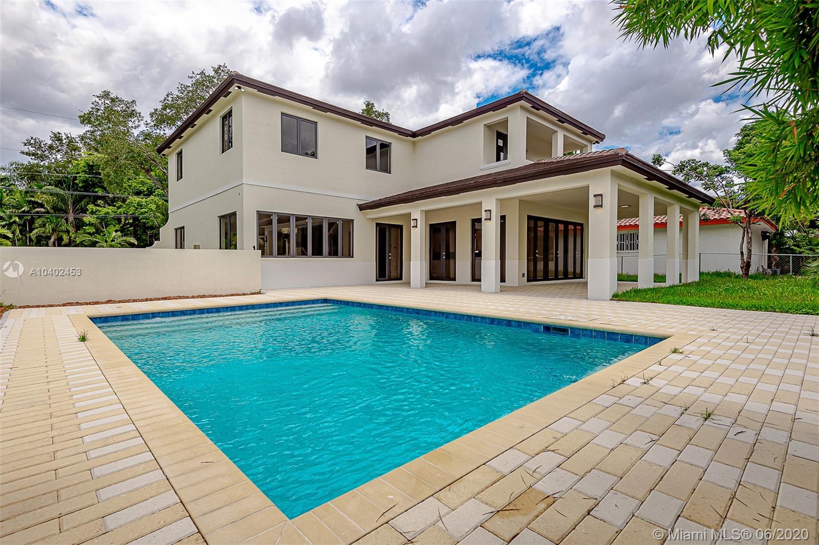 Beautiful two story, 4 bedroom, 3.5 baths. Dramatic volume ceilings, ceramic tile throughout the first floor, living room, dining room, family room, large gourmet kitchen with island in the center, crafted solid wood European style cabinetry with quartz tops, abundant closet space, full sized two-car garage. Wood on the stairs & 2nd floor All bedrooms are on the second story. Enjoy the pool, deck on the beautifully landscaped yard. Driveway with interlocking pavers, impact resistant windows, double entry doors and French doors to beautiful covered terrace. Fence and electric gate to driveway! Take advantage of historically low interest rates. Don't miss this opportunity to afford more house for less. Principal and interest $3,915 with 20% down. Call for qualifications and details.