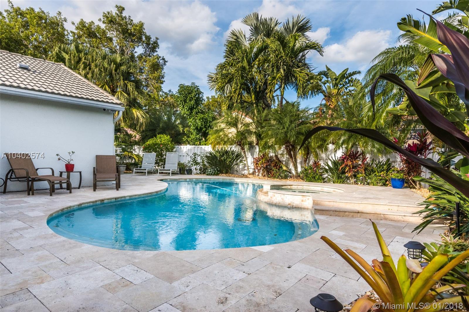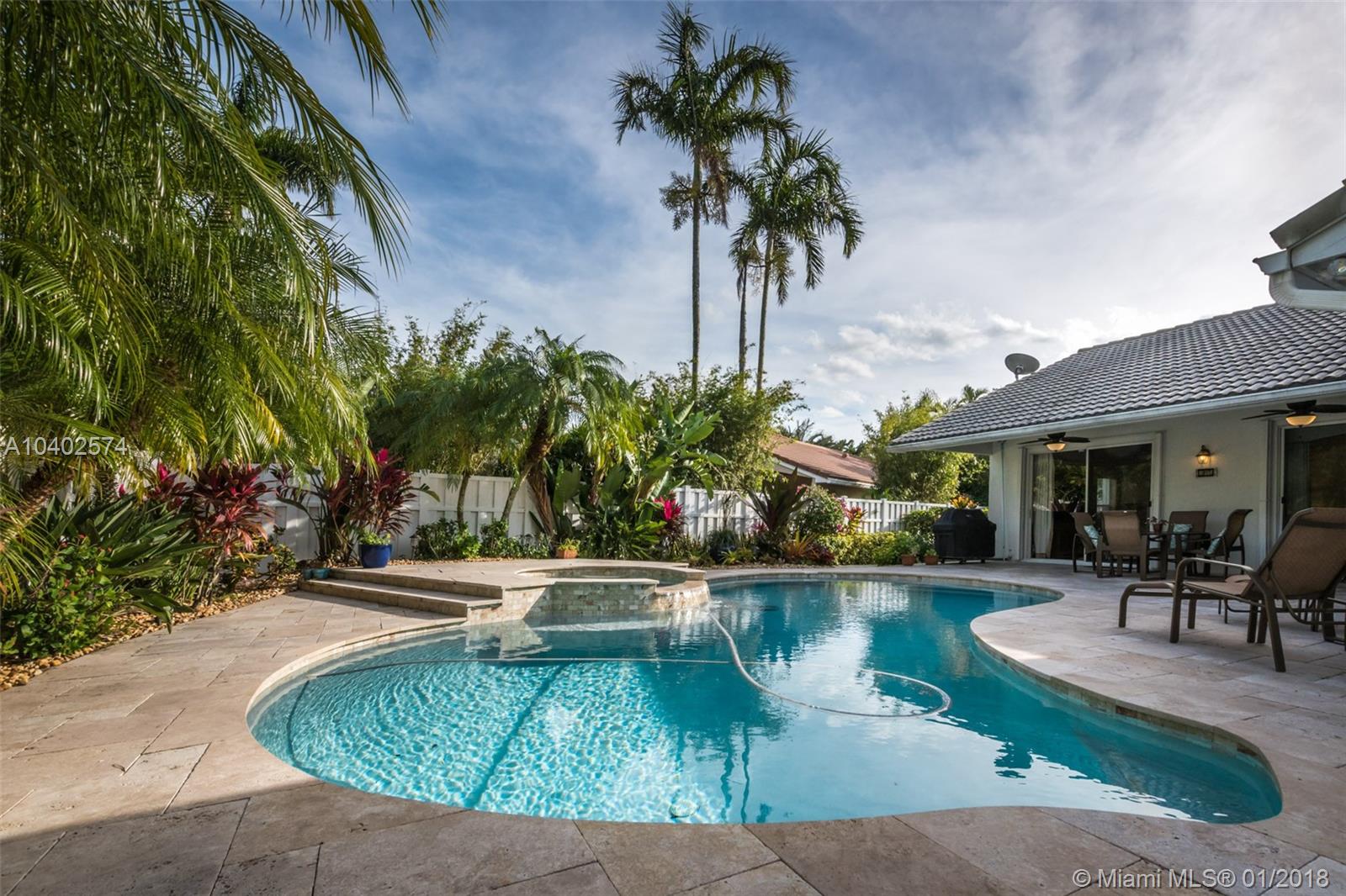 Welcome to Waterford Landing - a boutique community located in walking distance to Weston Town Center. Custom Home with pride of ownership tucked on a private corner lot with an oversized lushly landscaped yard fully PVC fenced for privacy. Grand circular pavered driveway. Recent renovations include a new chefs kitchen with white wood shaker cabinets, granite countertops and SS appliances. All bathrooms have remodeled in today's style and taste with quartz countertops. White diagonal marble floors throughout living areas. All new wood-look rectified porcelain tile floors throughout bedrooms. Renovated travertine pool deck with diamond bright and spa. New A/C in 2017. Custom drapery. Crown molding throughout master and living areas. LED ceiling lights throughout living areas.Newer roof 2007