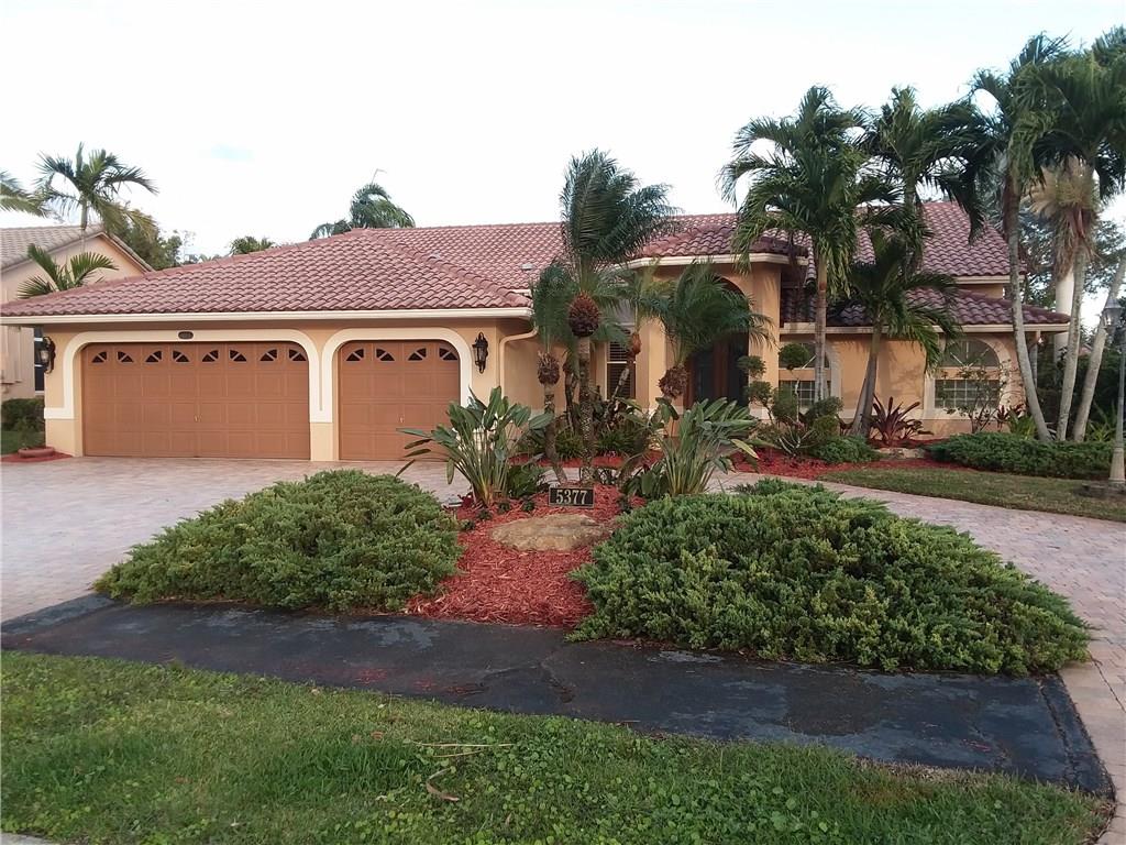 Highly sought after Kensington Commons 5 bedroom, 3 bathroom, 3 car garage pool home. Triple split floor plan. Has 2 new air conditioning systems installed December 2017. Newer water heater, bathrooms remodel, kitchen updated, oversized family and oversized laundry room, crown molding, large paver circular driveway, saltwater / heated pool and irrigation system has a well.
