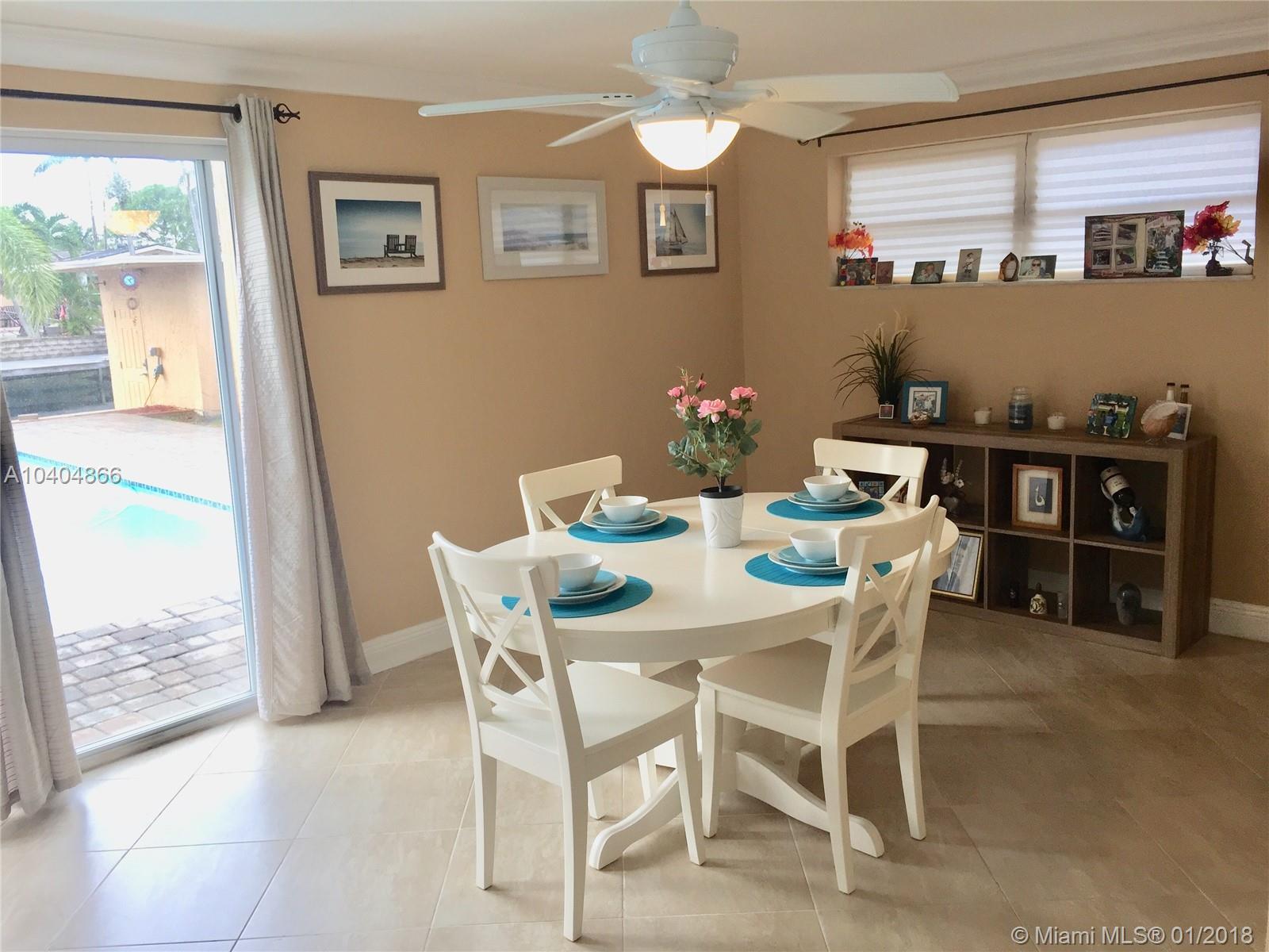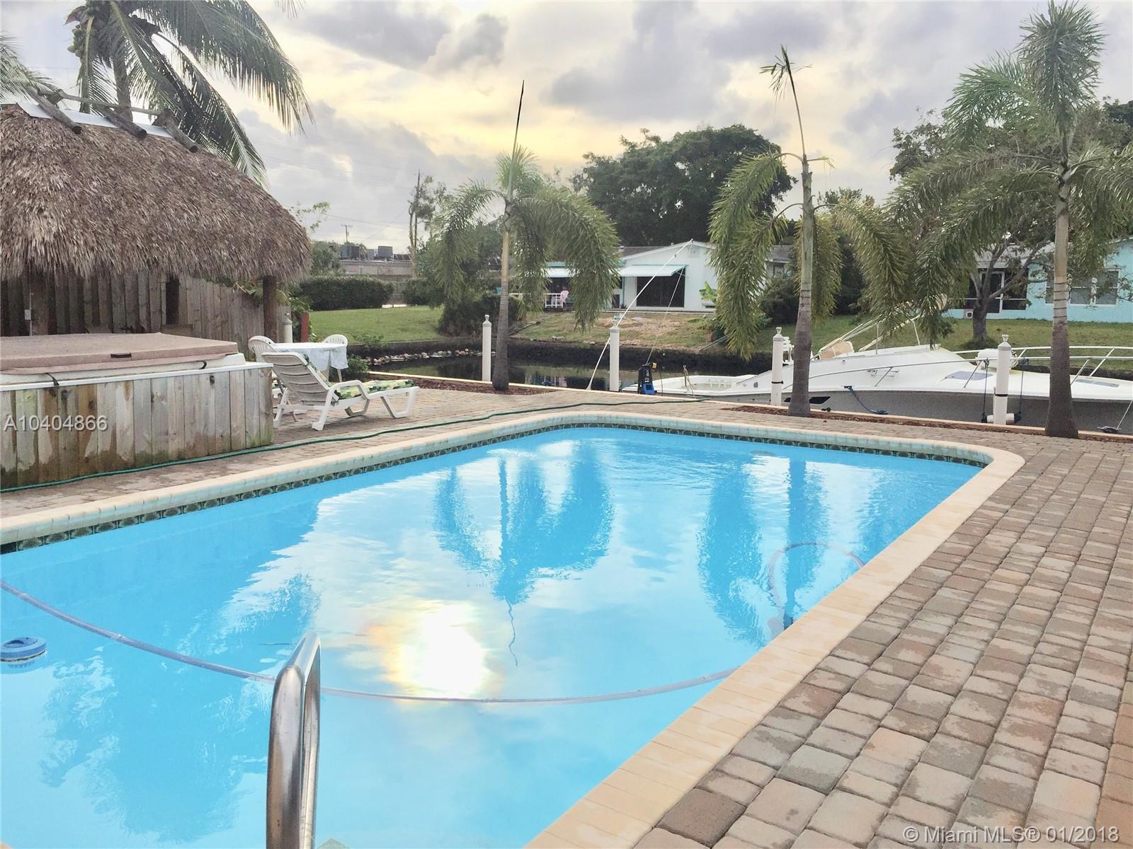 Beautiful Deepwater Waterfront property with Ocean Access. 60 ft dock with power hook up and separate boat house. Open and spacious remodeled 3/3 one story home with granite counter tops, stainless steel appliances and new kitchen cabinets. Neutral colored tile throughout, cabana bath and split bedrooms. Beautiful outdoor area with pool, jacuzzi and tiki hut, great for entertaining. Approved for all new impact windows and doors as part of the Fort Laud. Sound Insulation Program. Large side yard with room for RV parking/boat trailer. New A/C, new water heater, new electric panel with upgraded 50 amp breaker. Outside cameras to view pool and boat dock area. There are 2 approaches to Intercoastal waterway. 1 has a height limit of 10-11" and the other one is unlimited height. Bring your boat!