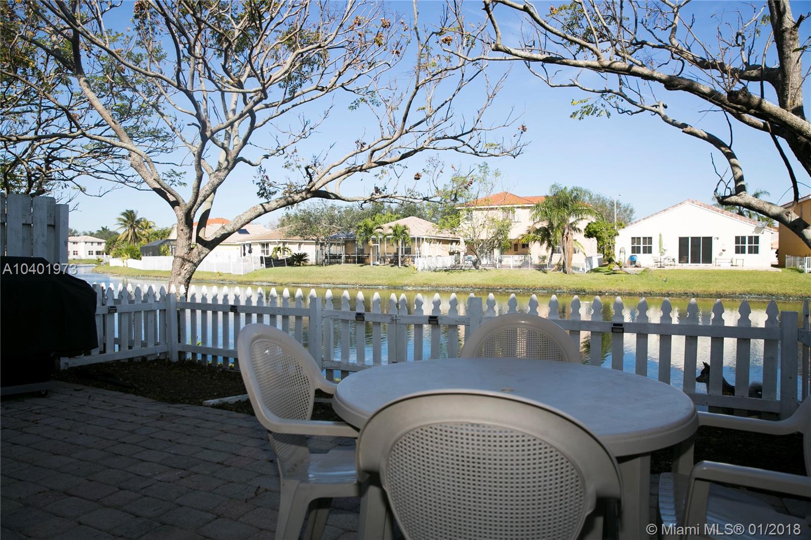Beautiful 2 bedroom 2 bath townhome with fenced patio overlooking lake and canal. Tile and wood first floor and wood second floor. Master bedroom upstairs has a balcony overlooking the canal and lake. Two car driveway with plenty of guest parking nearby. Exterior is recently painted. Community pool and kids playground area. Easy access to I-75 and the Florida Turnpike. Part of the garage has been converted into another room.