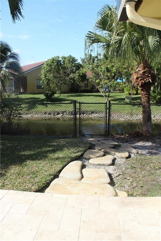 Charming 4 Bedroom 2 Bathroom Water front Pool home in The Crossings on a corner lot with a large fenced in yard in a very desirable neighborhood. Close to Parks and schools. Beautiful Bathrooms, Updated Appliances Accordian Hurricane Shutters, Security System, and Interior Utility/Laundry Room and so much more...This well kept property is a must see!