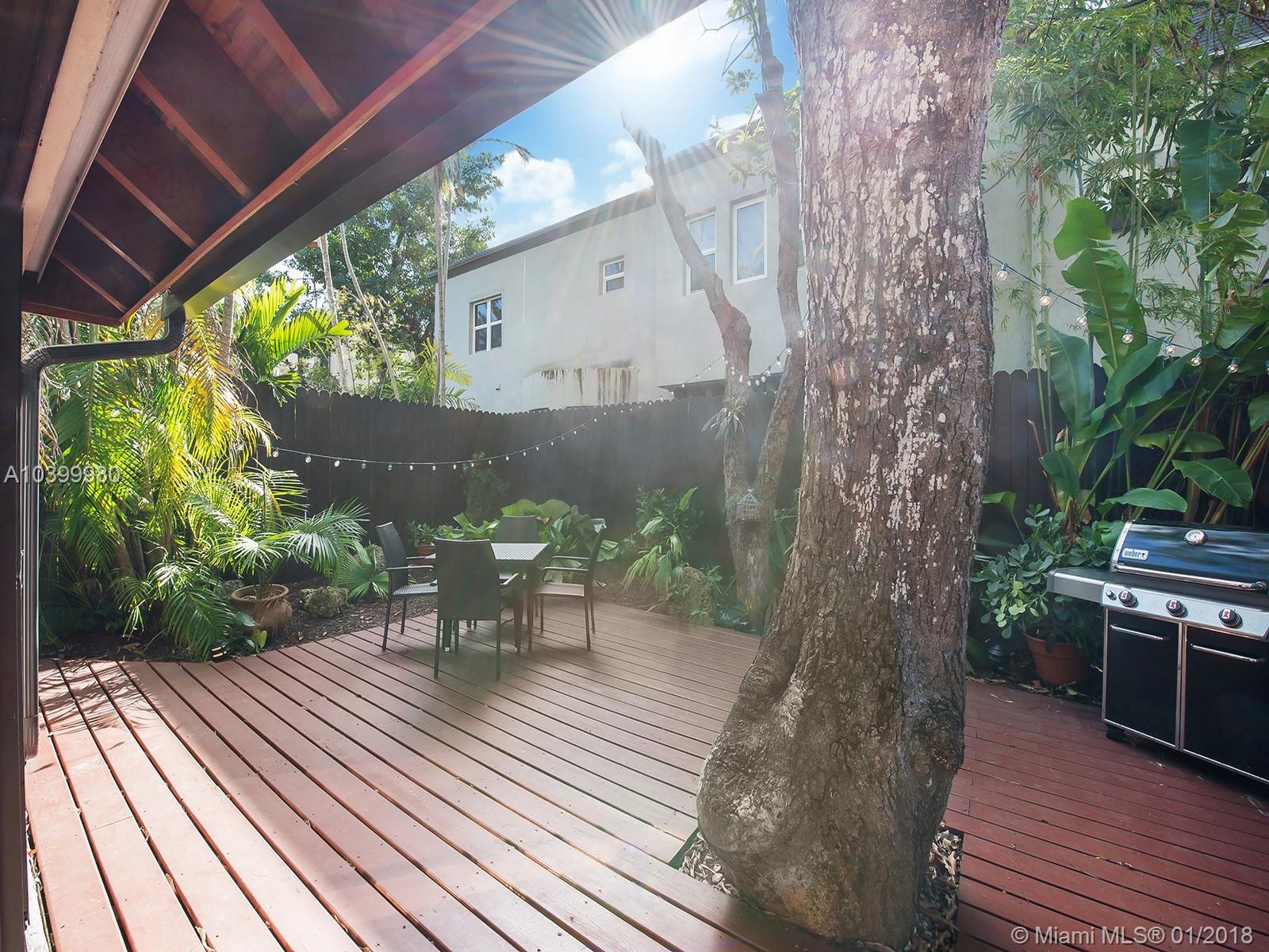Private two-story Villa within two blocks from children's and doggie park in the Heart of Coconut Grove. You will feel right at home in this warm California contemporary style architecture with great outdoor space. Enjoy dining alfresco or a quiet afternoon meditating in your very own garden on the newly installed deck. This fee simple townhome blends modern and vintage elements to create a fresh, compelling approach to stylish living today. Two assigned ample parking spots. Live the Grove lifestyle! Walk to your favorite cafes, coffee shops and trendy restaurants within minutes. Close to MIA, downtown Miami, and the Beaches!