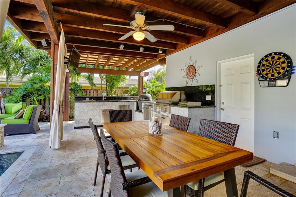 Updated 5 Bed/3 Bath Pool Home W/1-Car Garage Situated On A Quiet Corner Lot in the Heart of Coral Ridge. Split Bedroom Floor Plan W/2 Masters, An Open Concept Living Area W/Beautiful Restored Terrazzo Floors, Gourmet Kitchen W/Granite Counters And SS Appliances W/Natural Gas Stove & New Bamboo Floors in 3 Bedrooms. Step Outside To The Ultimate Backyard Experience W/Large Covered Pergola, Updated W/New Heated Pool & Spa, Travertine Pavers, Outdoor Speakers & Full Outdoor Kitchen W/Built-In Gas Grill, Fridge, Cooler, Sink & Charcoal Grill. Home Features Include; New Salt System, Impact Windows & Doors Throughout, 2 Propane Tanks, Speakers In Master Bedroom & Kitchen, Designer Finishes Throughout And New Doors in Guest Bedrooms. Located In Bayview School District.