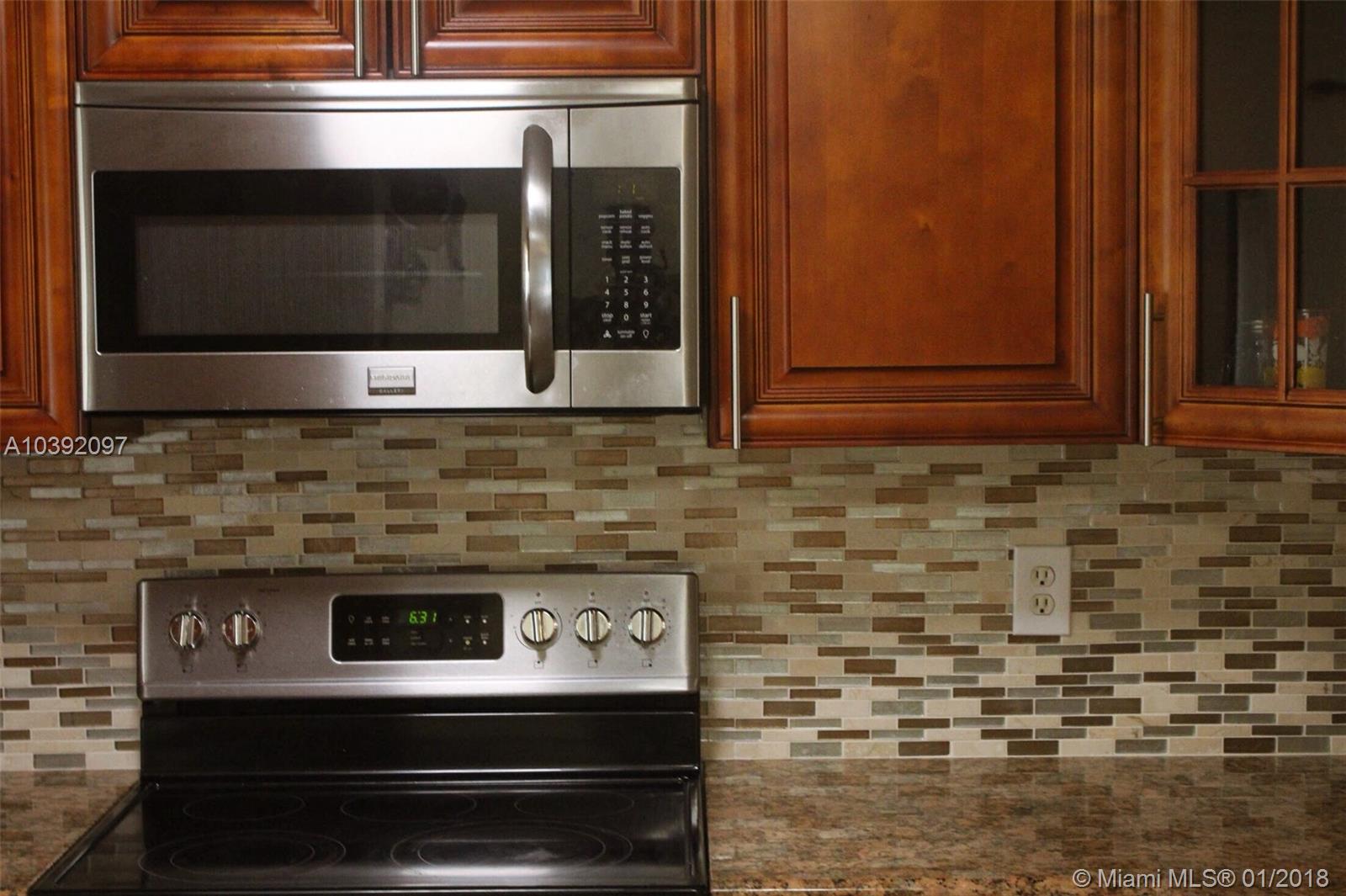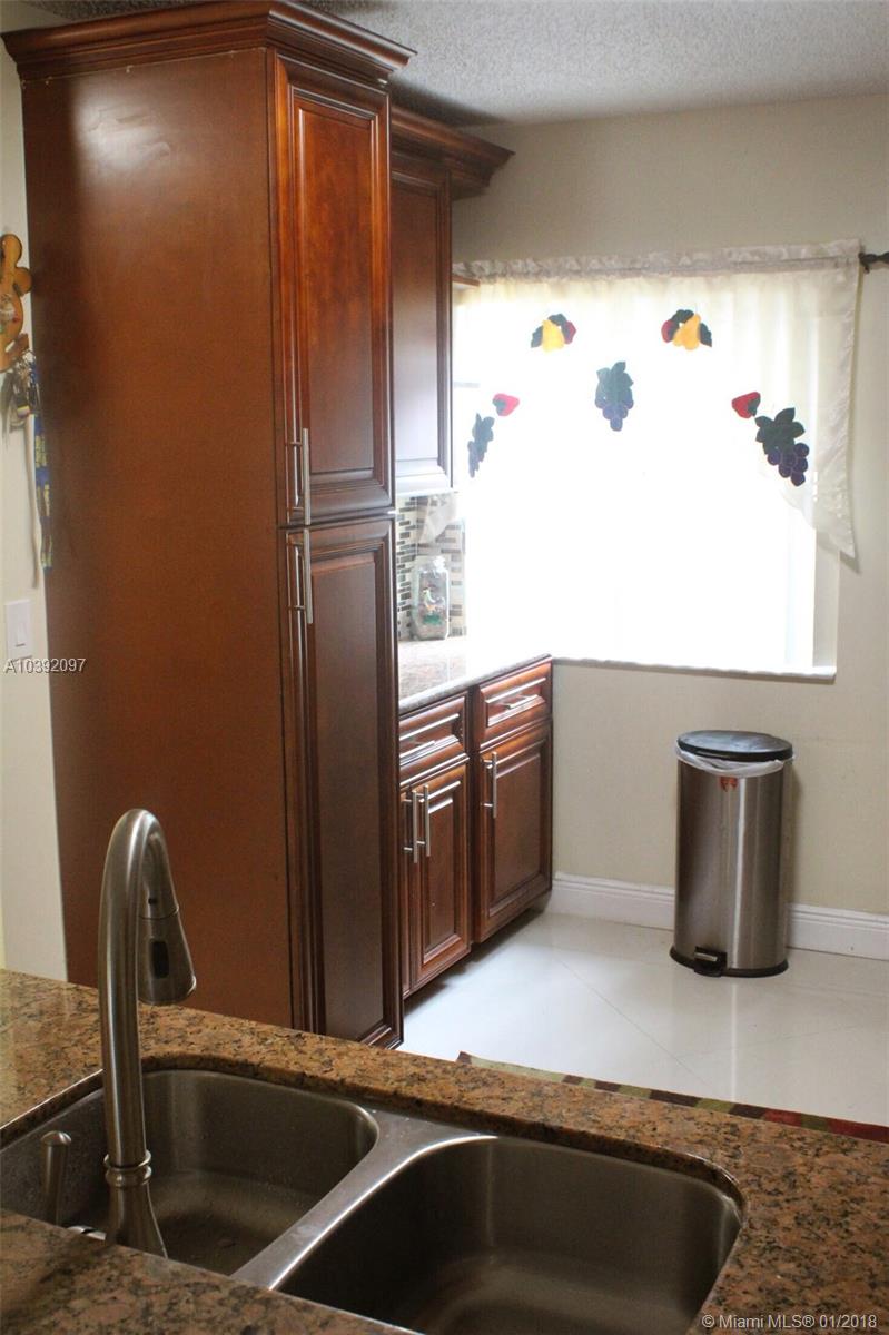 This open floor plan has all the upgrades plus many more. The dark (laminate) floors grace the second levels and stairs (no carpet) throughout home. The kitchen is totally renovated & ALL UPDATED APPLIANCES STAY. Newly installed BEAUTIFUL porcelain tile floors on the first level. Close to highways and all that Pembroke Pines has to offer. Family room and dining room; kitchen offers granite counter tops, pantry, and large renovated cabinets. Also includes a laundry closet and hurricane shutters. The master bedroom features walk-in closet and full bath. Don't miss your chance to live in this desirable, prestigious, and gated community!