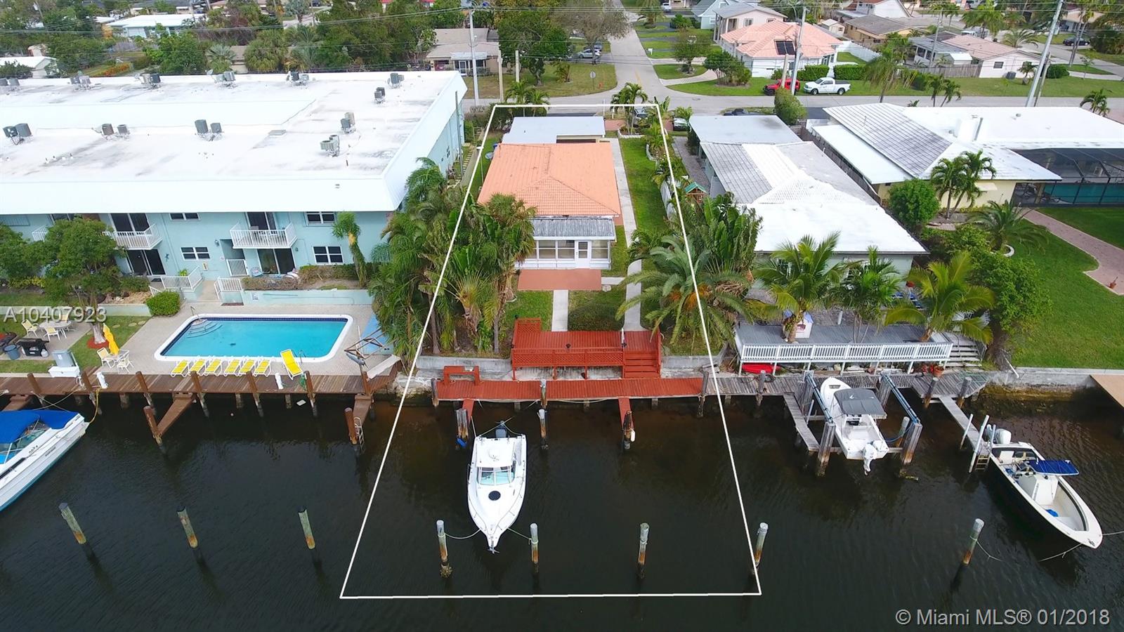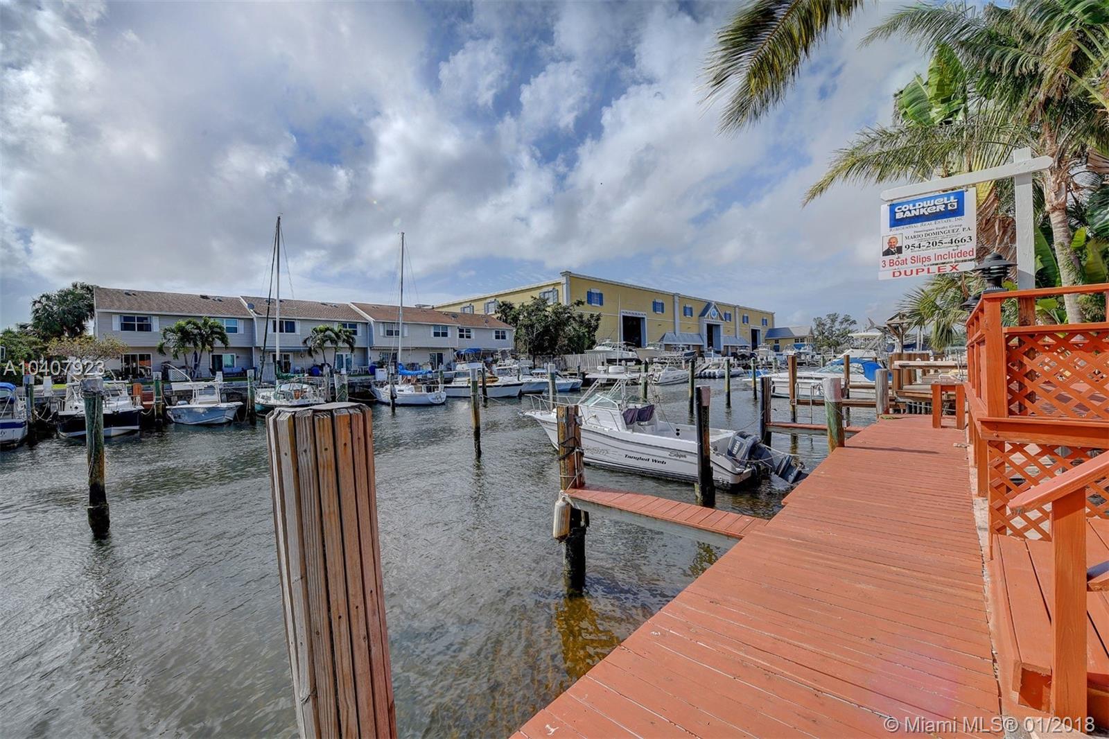 AMAZING OPPORTUNITY! Currently a Duplex but can be EASILY made into a residential SFH by opening up interior. Three boat slips/docs included. Five minute boat ride to Hillsboro Inlet & beaches, no fixed bridges, deep/wide Intercoastal canal. Every SFH on this Intercoastal canal is listed for 1.2 million+++. Multi million dollar full service marina just an anchor throw away. This property is in fantastic updated conditions. You can not & will not beat this shot at owning an Intercoastal home with 3 boat slips at this price! Currently also listed as Duplex under Residential Income properties (A10406486). If you have someone wanting a home on the Intercaostal waterway but just cant quite reach that price range...DO NOT MISS OUT ON THIS ONE...show them immediately...they will owe you forever!