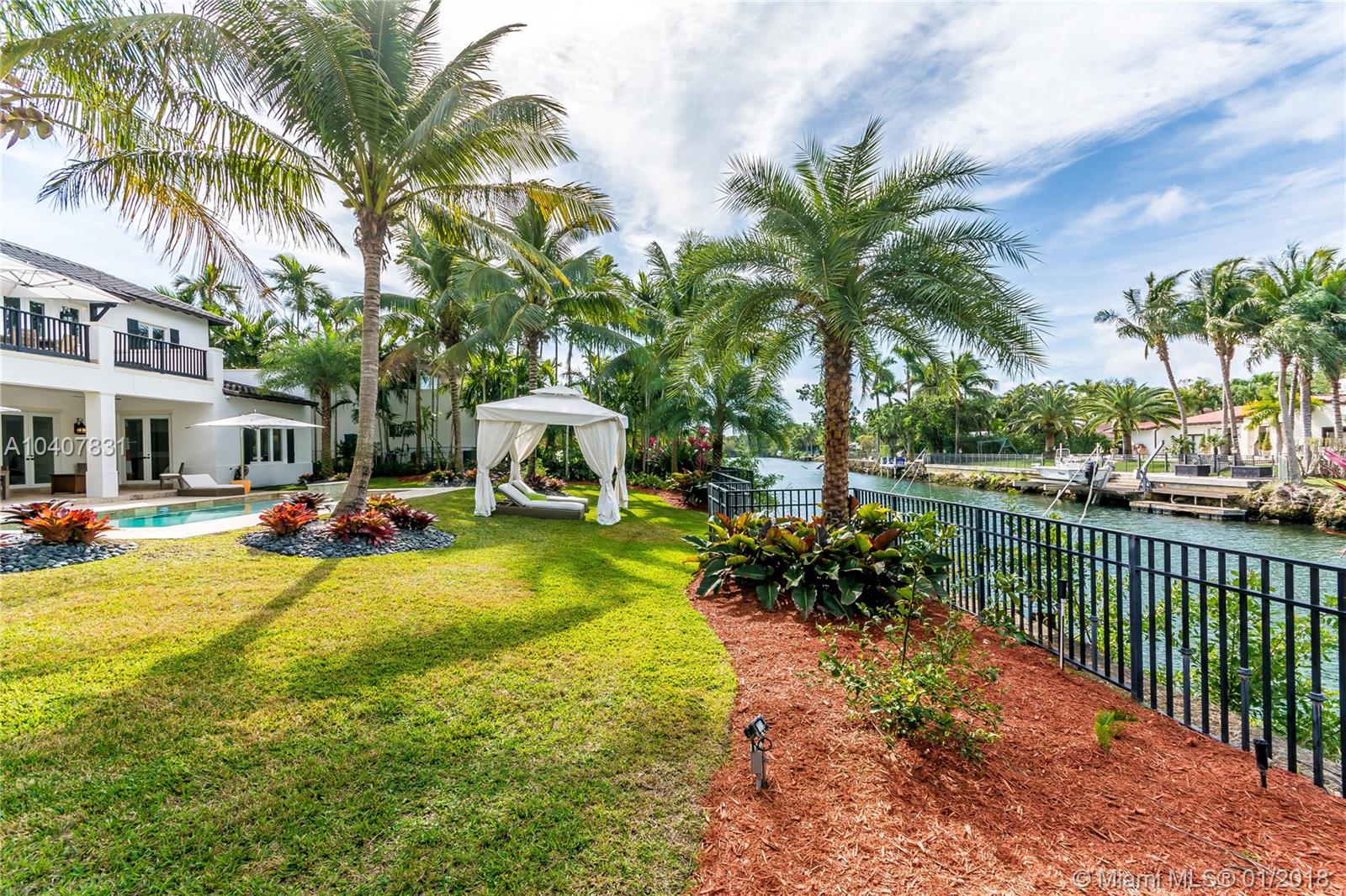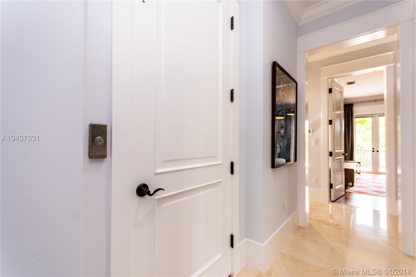 Spacious, gated, contemporary Island–style villa nestled in the heart of Coral Gables, on the Gables Waterway with ocean access. Abundant natural light, expansive verandas and terraces, gorgeous water views from the large entertaining kitchen, which itself boasts a single-slab marble wall. Completely renovated and updated with 6 bedrooms, 7.5 bathrooms (all bathrooms are en suite), 3-car garage, Chicago-brick driveway, impact windows and doors, security cameras and "smart home" features, wine cellar, and lighted tropical landscaping. Formal living and dining areas, plus family room open to the kitchen and facing the pool patio and waterway, all designed for gracious, elegant, yet relaxed tropical living