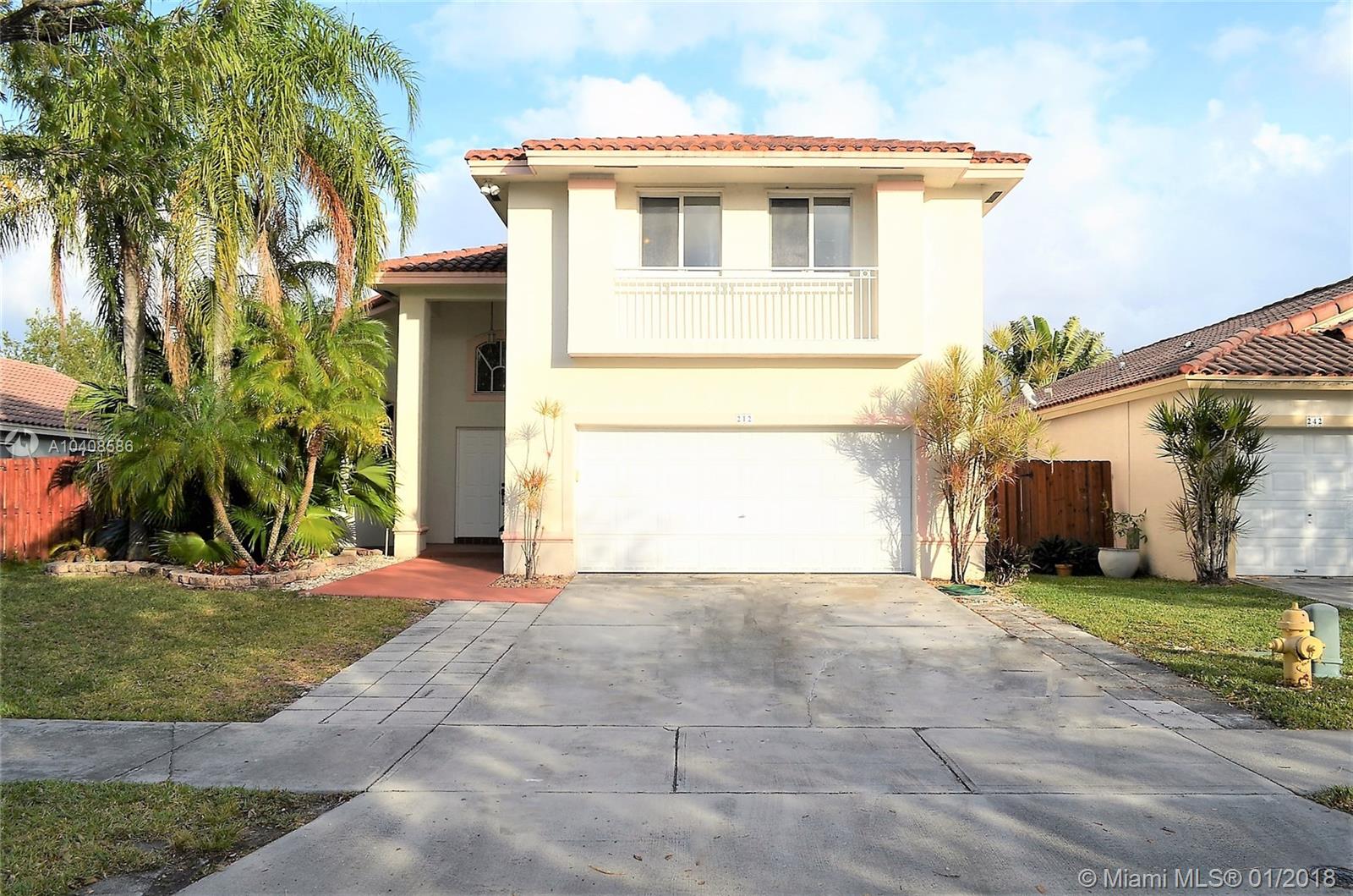 Lovely 4/2.5 home in the family neighborhood of Vista Filare, **Great Spacious floor plan & Volume Ceiling with living/dining and separate family room that can be easily converted to a 5th bedroom**Updated kitchen with wood cabinets and Granite Counters tops** Master bath has separate sinks, shower and Roman tub**Walk in closet with built-ins** Hurricane shutters**Low HOA fee Only $60 a Month **2 car garage with 4 Car Driveway**. A Rated Schools **Near 595-I-75 Highways Ikea, Publix, Restaurants , Sawgrass Mills Mall, Parks and Much More!. Sold As-is.