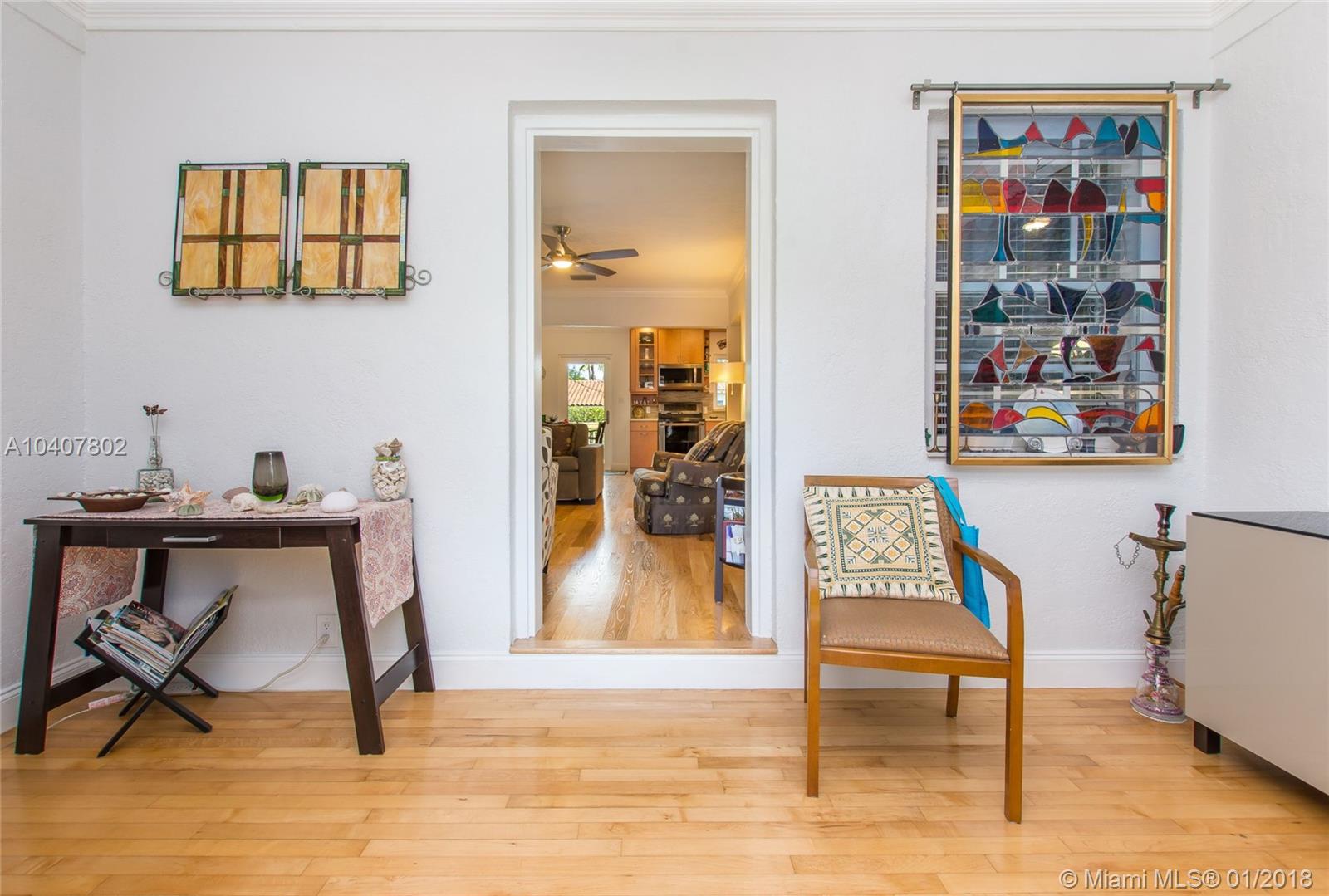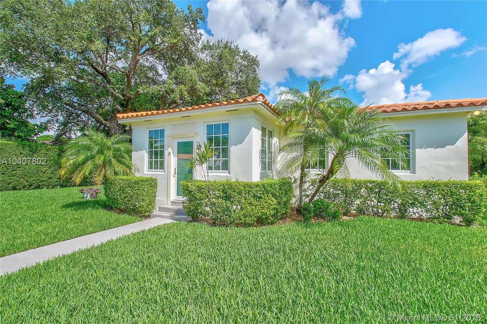 Charm, comfort, updates, and community await the savvy buyer for this three bedroom home set on landscape double lot nestled in a lovely neighborhood. Custom kitchen featuring geostone countertops and chic cabinets and lighting. Sun drenched foyer with maple floor. European style bathroom with porcelain tile shower and marble floor. New electrical 200 amp panel with underground connectivity from FPL. New HVAC unit sized for future home expansion. Oak hardwood floors through out BR, LR/DR. Additional 120 foot deck for entertaining. Impact windows and doors. Short walk to Coral Gables trolley and the Miami trolley stop is at the corner.