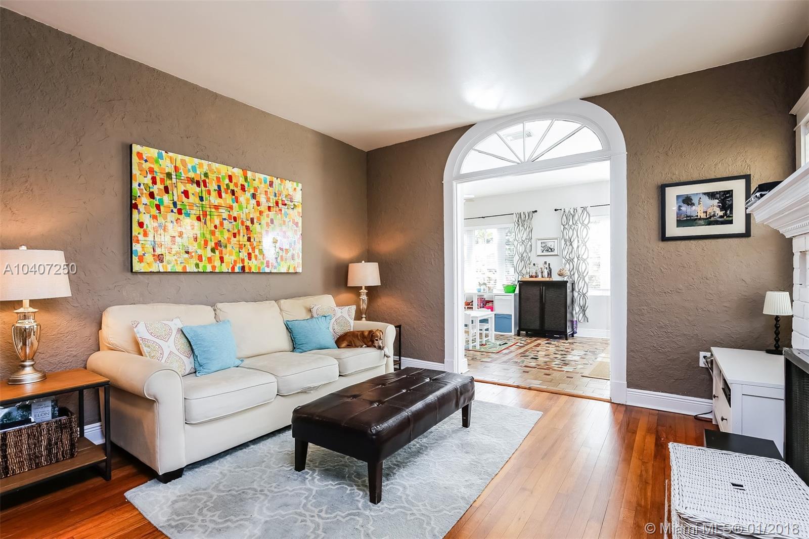 This bright and remodeled old-Spanish home features beautiful 1920s architectural details throughout with all the modern luxuries of today. Updates include reinforced impact windows and doors and a remodeled kitchen with a custom-built eat-in breakfast nook. Main house has 3 bedrooms/one bath, detached cottage/garage has an A/C wall unit with one bathroom. The home has great curb appeal with mature landscaping and lighting on a fenced 7,200 sq. ft. lot. There is plenty of room to expand, build a pool or possibly connect the main house to the back cottage. The neighborhood is very friendly and walkable with close proximity to restaurants & shops, as well as the Coral Gables Trolley making it an ideal starter or empty nester home.