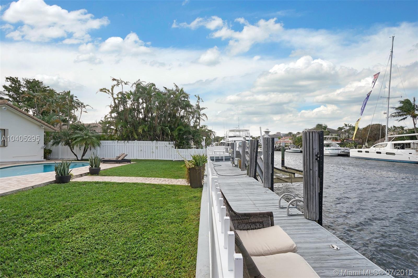 NEW FLOORING JUST INSTALLED! PRESTIGIOUS RIO VISTA ISLES WATERFRONT!75 FT of Deep-Water Ocean access with no fixed bridges, 3 Bed/Split Plan, all bedrooms have walk-in closets. 3 Baths renovated with designer touch. Open waterview floor plan with natural lighting, and updated wood floors throughout. Gorgeous kitchen w/ambient lighting & 2 bars, huge heated pool along side of a tiki hut overlooking the dock & water. Pavered Patio & circular driveway with a 2 car garage. 12,500 LB boat lift & underwater lighting. Adjacent to Las Olas Boulevard, lined with Boutiques, Galleries, Restaurants, and Cafes.