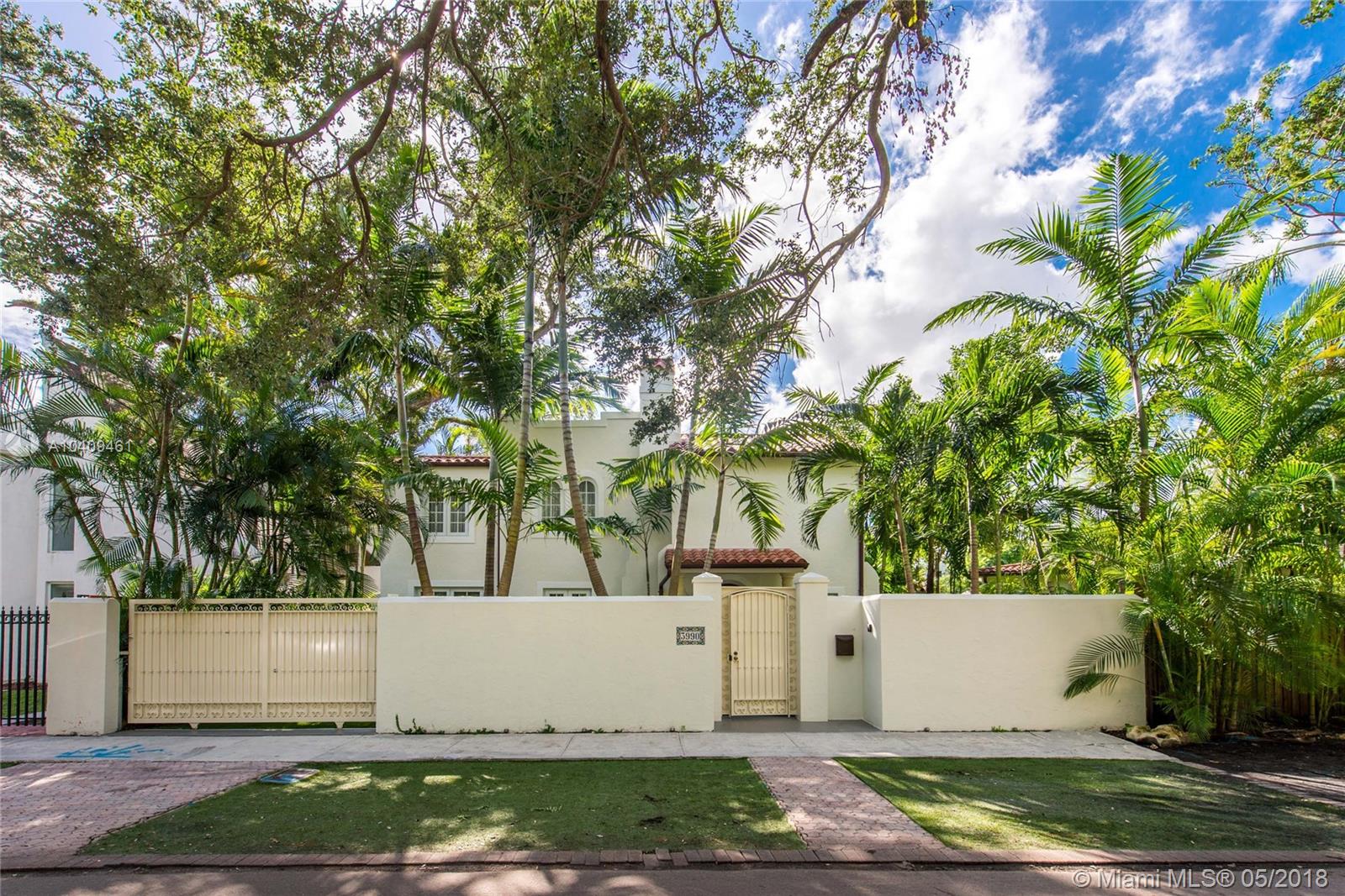 Stunning European-style villa set behind a privacy wall & gate that opens to a lush tropical garden.The home has been artfully restored & completely renovated to a rarely seen level of quality & style. Light-filled living spaces w/ a classic yet relaxed ambiance. Notable features include original fireplace, Berti wood floors, white beamed ceilings & impact glass throughout. Italian designer kitchen w/ Effeti wood cabinetry, Flos lighting and Sub-Zero & Wolf appliances. Luxurious master suite features separate sitting area & spa-like bath w/Antonio Lupi and Villeroy & Boch fixtures. French doors in the large family room, open to a resort-style outdoor space w/oversized pool surrounded by expansive terraces & summer kitchen.Free-standing 1/1 guest quarters complete this spectacular property.
