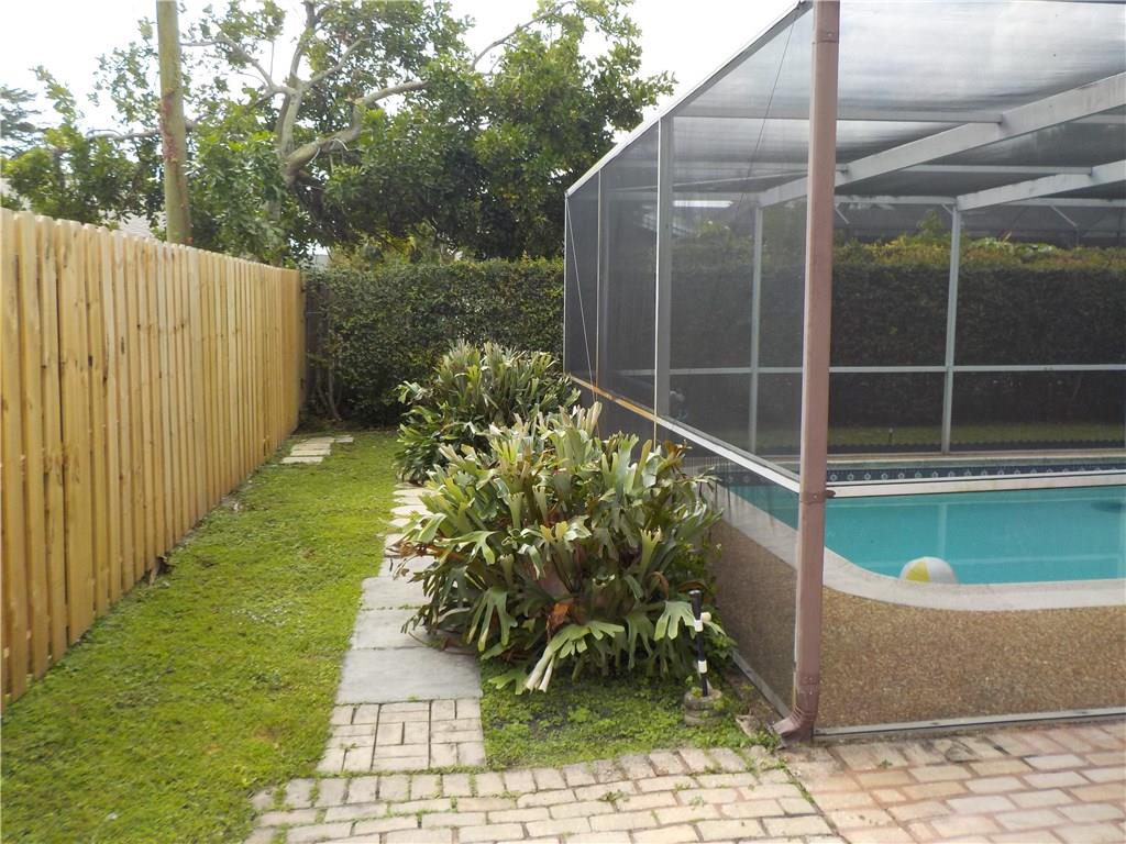 This is the One! Spacious 3 bedroom 2 bath home with split floor plan. Home features not 1 but 2 updated cabana style bathrooms that lead out to pool area. Formal dining room and family room adjoin kitchen to make a great space for entertaining. Plenty of space for your outdoor stuff too... From the large screened in pool area, separate backyard shed, 2 car garage, circular driveway and fully fenced yard... You will have no problem making this wonderful property a home of you own!