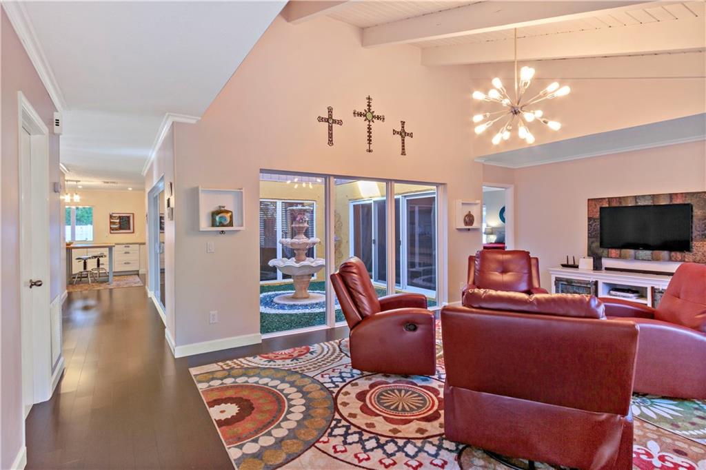 TOTALLY REDONE TASTEFULLY WITH TODAY'S LOOK! UNIQUE FLOOR PLAN WITH EVERYTHING NEW FROM FLOORS TO ROOF. NEW IMPACT DOORS & WINDOWS/SLIDERS,HARDWOOD FLOATING BAMBOO FLOORS, PVC FENCE, CROWN MOLDING, NEW APPLIANCES, CHANDELIERS,KNOCKDOWN CEILINGS, FANS,LIGHTS, CABINETS,CUSTOM CLOSETS, WATER HEAR, AIR CONDITIONERS.ATRIUM WITH FOUNTAIN ,2 SECURITY CAMERAS, GLASS ROCKS, CANOPY ADD RELAXING AMBIANCE. CAN EASILY BE MADE CONVERTED TO ANOTHER BEDROOM. NO HOA. CONVENIENT. PRICED BELOW NEW APPRAISAL . FIRM OFFERS