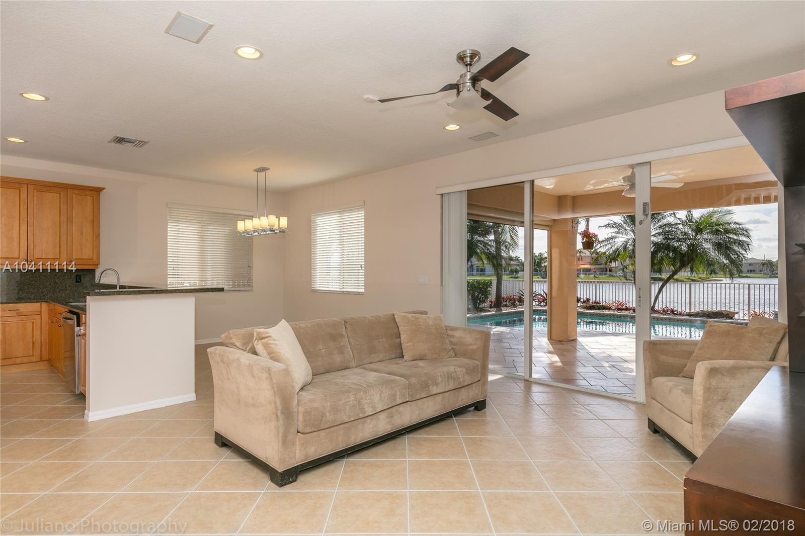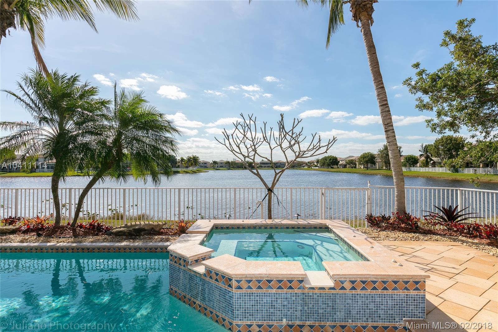 Come see and fall in love with this SPECTACULAR 6 bedroom , 4 full bath home in Laguna Isles. Beautifully situated on a tranquil long lake view with gorgeous sunsets & 6ft deep SALT WATER & HEATED POOL & JACUZZI! When you first pull up you will be in awe of the professional landscaping and flowered trees and palms, extended sealed driveway and upgraded lighting on and around the home w/ accordion shutters. Once inside, you will be captivated by the vaulted ceilings, new paint, diagonal set tile , new grout and upgraded lighting , fans and drapery. This home has the largest kitchen & island in Laguna Isles, all newer appliances throughout, gas stove, granite counters and eat in dining. One full bed and bath downstairs. Too many upgrades to list. Attachment with all upgrades to see.