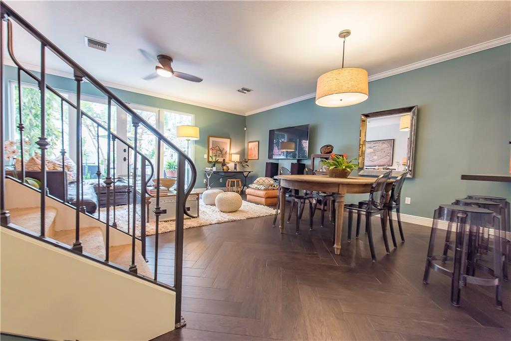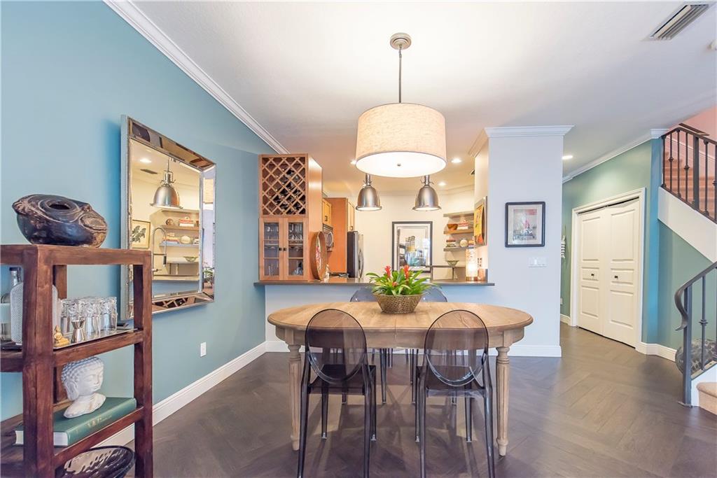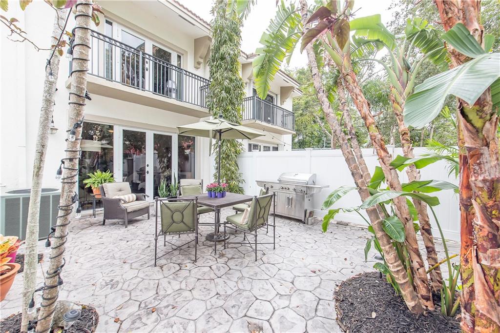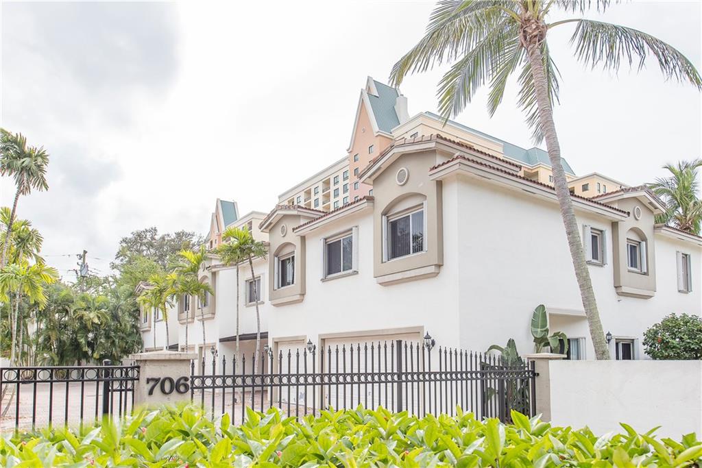 Intimate gated community steps from Las Olas Blvd 1 Garage & 1 Carport space plus community pool. Exquisite designer renovations featuring ceramic plank flooring laid in herringbone pattern; Carrera marble design in half-bath. Kitchen has hardwood; Caesar-stone surfaces and stainless appliances. Living area opens to spacious private patio perfect for entertaining. Custom stair rail leads to spacious master suite w/ balcony plus 2 guest BR's & bath ondo Assoc. Maintenance pays insurance and most utilities.