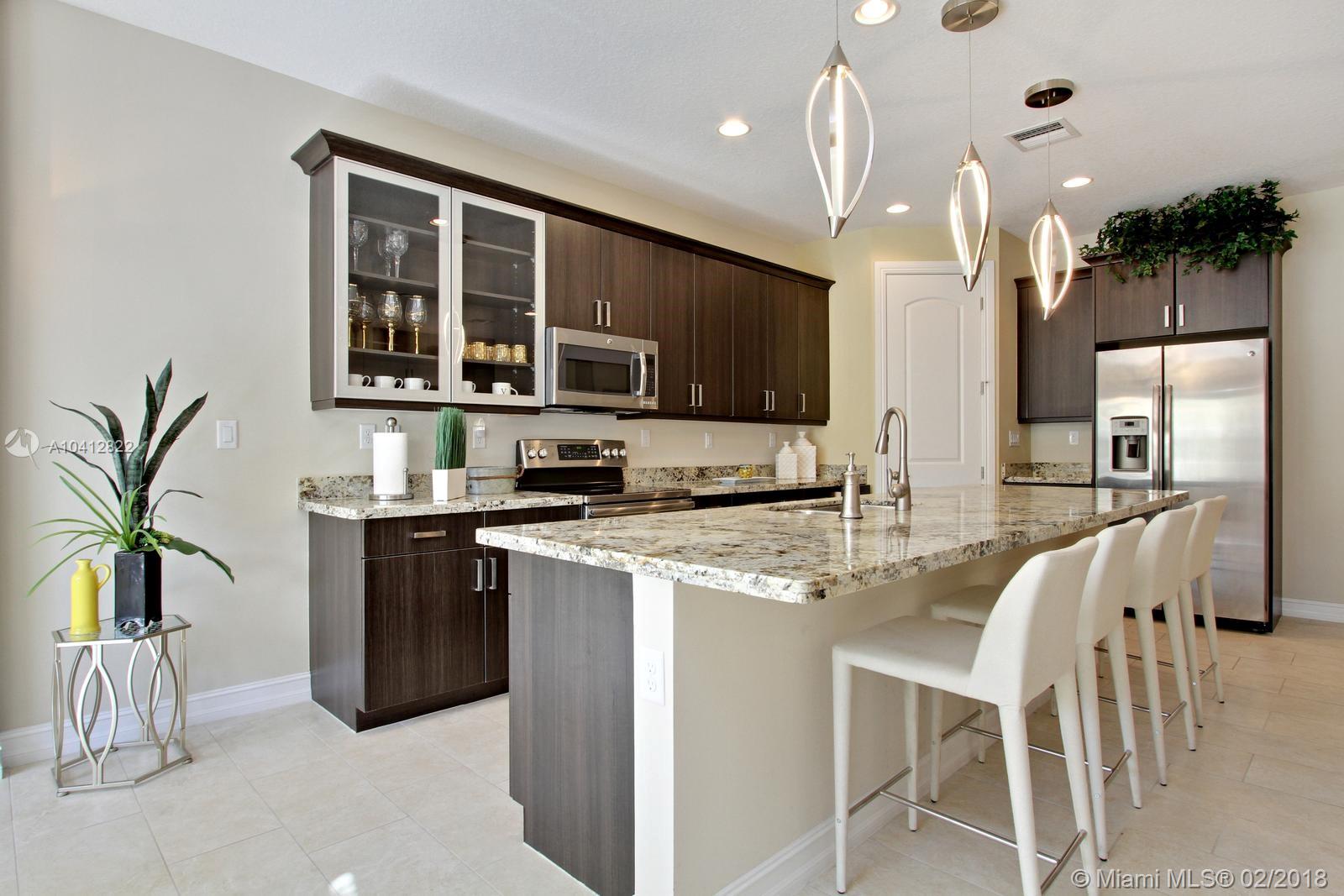 This absolutely stunning residence is located at Valletta in East Boca Raton, this fabulous unit is a FLOOR MODEL that have upgrades galore, from the gourmet kitchen with designers cabinets, an expansive island with upgraded Granite and the beautiful lighting right above it, SS appliances, oversize pantry and spacious laundry room, to the master bedroom with designer ceiling and quality finishes, designers wall cabinets and wall finishes, a covered balcony, and an open patio of the living area, this spacious floor plan offers high ceilings with recess lighting, impact windows, sliding impact doors, security system and so much more including the Epoxy finish in the garage... Valletta is nestled between Delray Beach, Mizner Park and minutes away from the Beach.