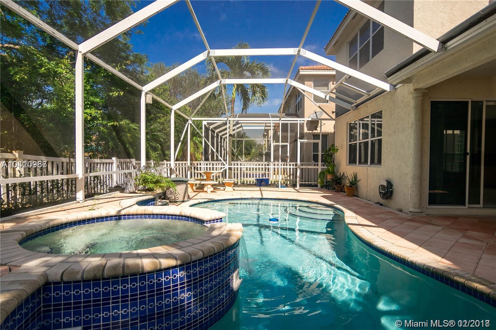 Gorgeous 5/3 home with beautiful and private pool/spa area, perfect for entertainment, fenced yard.Great floor plan, gourmet kitchen with 42'' wood cabinet, granite countertop, title floors downstairs, laminate floors upstairs and stairway.Large master w/sitting area, master bathroom with double sinks, separate shower/tub spacious and bright unit. Great community offers gym, pool, basketball and many others amenities.