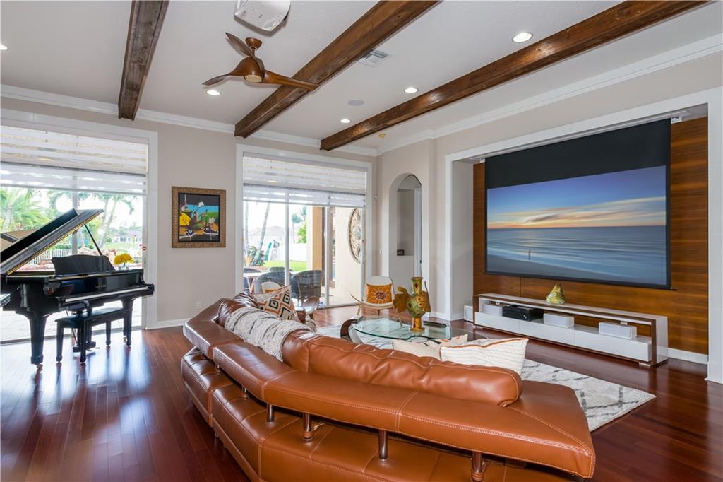 COOPER CITY-HIBBS GROVE .5 Acre Lot, 5BR/3.5Bath w/Built-In Theatre. Triple-Split Open Floor Plan, 3-Car Garage w/100K+ in Upgrades, Volume Ceilings, Crown Molding & Built-Ins throughout, Brazilian Cherry Wood & Porcelain Tile Floors. Upgraded Kitchen w/Subzero & Wolf Appl. Master Suite features His&Her CA Closets & Master Shower w/Jacuzzi Tub. Motorized Blinds on Sliders, Outdoor Security Systm. ½ Basketball Sports Court, Mtr Patio Screen Enclosure w/Outdoor Kitchen, Saltwater Pool, Jacuzzi, & Waterview.