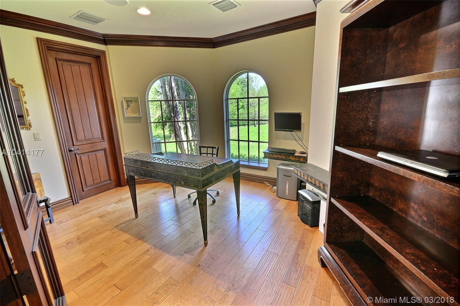 INCREDIBLE EQUESTRIAN CUSTOM MANSION AT 6,386 SQ FEET IN SOUTHWEST RANCHES BUILT IN 2008 SITS ON 3.6 PRISTINE ACRES BY SERENE CREEK. GORGEOUS ELECTRIC GATED ENTRY WITH COVERED ENTRANCE & CIRCULAR DRIVEWAY, SPACIOUS LIVING ROOM W FIREPLACE, LARGE FORMAL DINING ROOM, THEATER ROOM, 2 OFFICE'S W BUILT INS, GOURMET KITCHEN W SUBZERO STAINLESS STEEL APPLIANCES, ISLAND W SINK & BUTLER'S PANTRY. 4 BEDS, 4.5 BATH, HARDWOOD FLOORS, FRENCH DOORS. HIGH CEILINGS, HURRICANE IMPACT WINDOWS AND DOORS. ENJOY FLORIDA LIVING BY SALTWATER POOL W SPA & WATERFALL, OUTDOOR KITCHEN W GRILL, SINK & FRIDGE, ON LUSHLY LANDSCAPED 3 CAR GARAGE. 8 STALL BARN W LIGHTING, STORAGE & FULL BATH. FULLY FENCED PROPERTY. 2 PARCELS SOLD TOGETHER, TOTAL AREA 156,816 ST FEET. "A" SCHOOLS!!