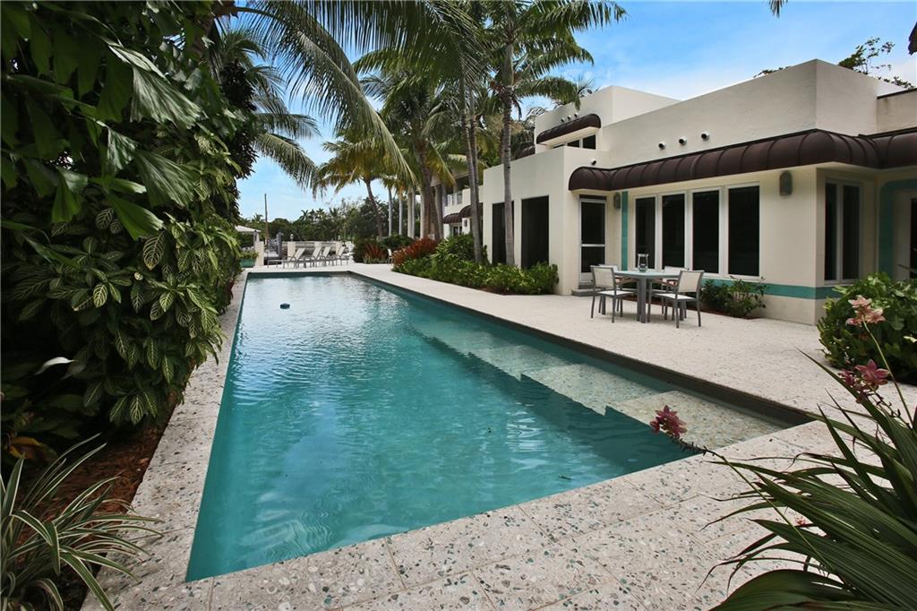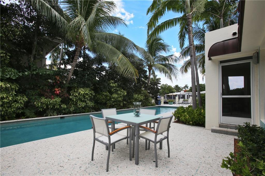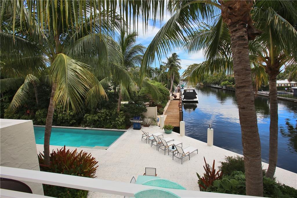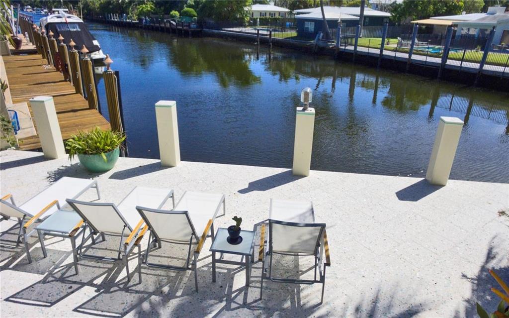 Perfect Idlewyld retreat! Extensive impact glass creates sun filled rooms to capture beautiful large pool & water views. Great entertaining flow from the Chef's kitchen Miele/Sub-Zero, living/dining room, fireplace, family/media room, 3 master suites (2 main level). Separate guest apartment at the rear of the residence, kitchenette & private entry. 4th bedroom currently den. Large expansive roof top terrace has beautiful long vistas to ICW. Dockage for approximately 45-50ft boat due to dockage angle.