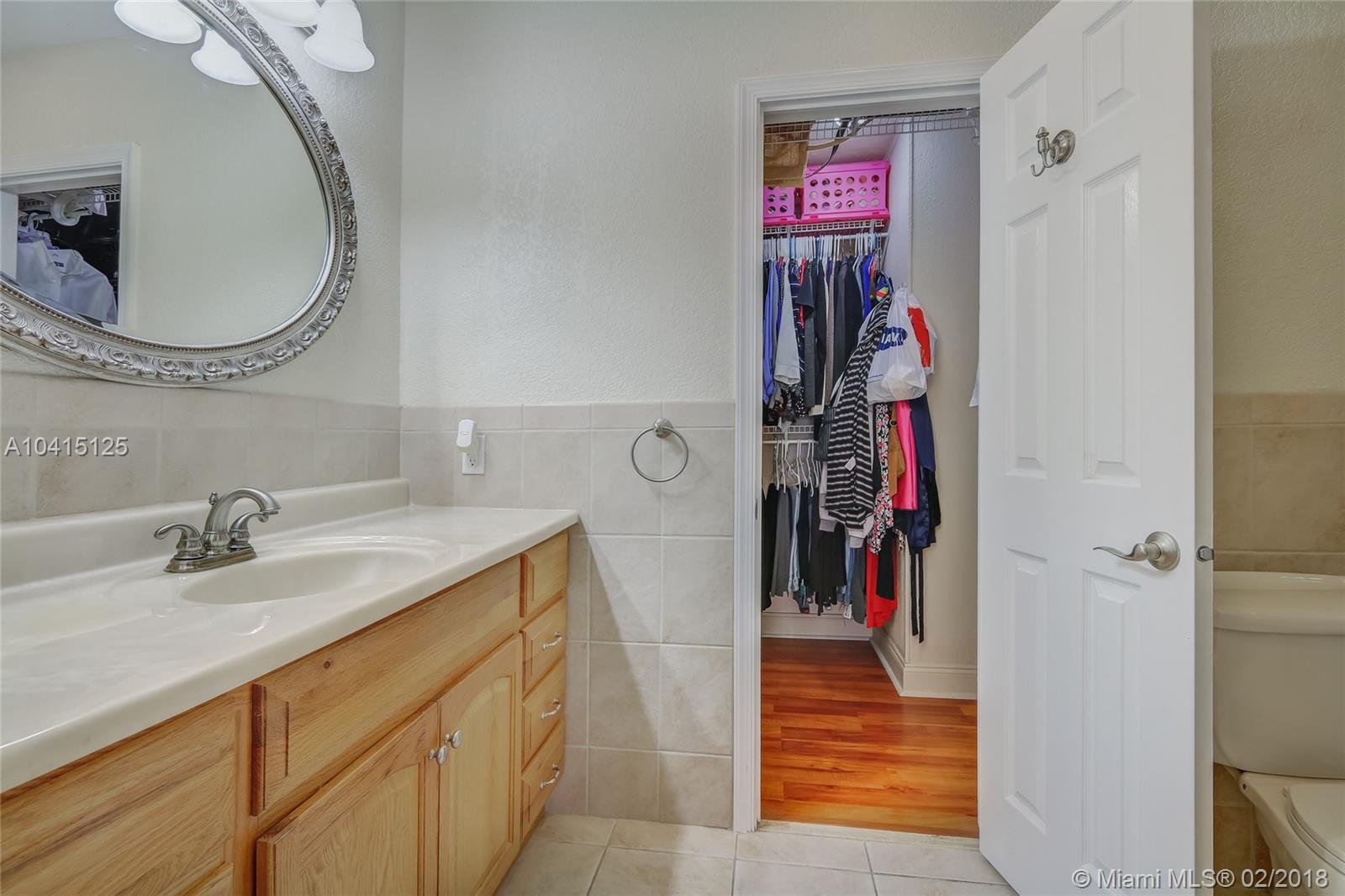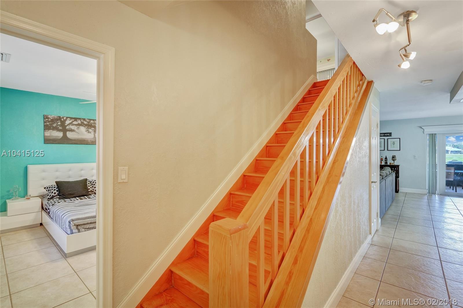 Extra spacious townhouse tiled throughout, laminated wood floors second flr, brand new washer, dryer and AC Unit. One car garage & additional two parking space, beautiful terrace in the front and spacious patio in the rear with golf course view. Watch the sunset from the comfort of this beautiful newly updated townhouse. Kitchen is great for entertainment & includes high hats, stainless steel appliances & extra cabinets for storage, eat in kitchen & formal dining area. One bedroom & full bath located in the first floor convenient for elderly parents or guest room. Huge master bedroom, walk in closet & balcony. LOCATION! Five minutes away from turnpike & palmetto, shopping center includes Publix, CVS, Panera & much more ONLY 2 minutes away.