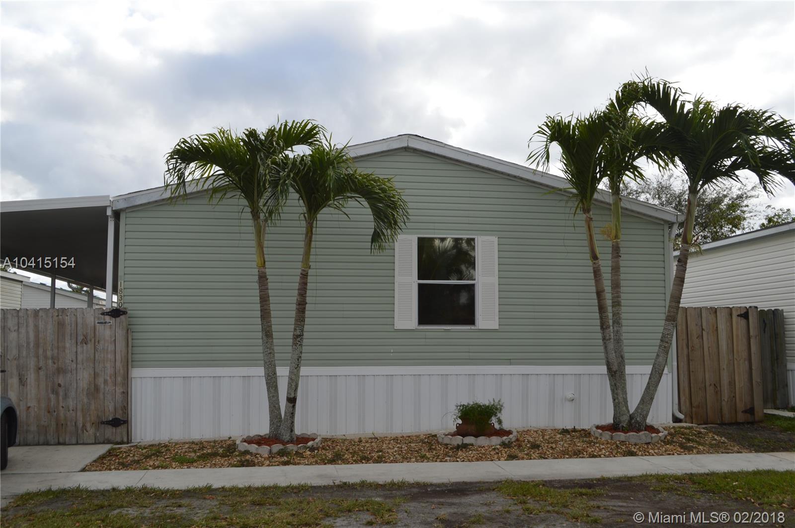 Stunning mobile/manufactured home in Holly Lake Community in Pembroke Pines. Futures 4 bed 2 bath, washer and dryer inside unit, laminate wood floors , s/s appliances, eat in kitchen, Paved patio,gutters,new A/C and much more. Low maintenance association fee and you own the land.