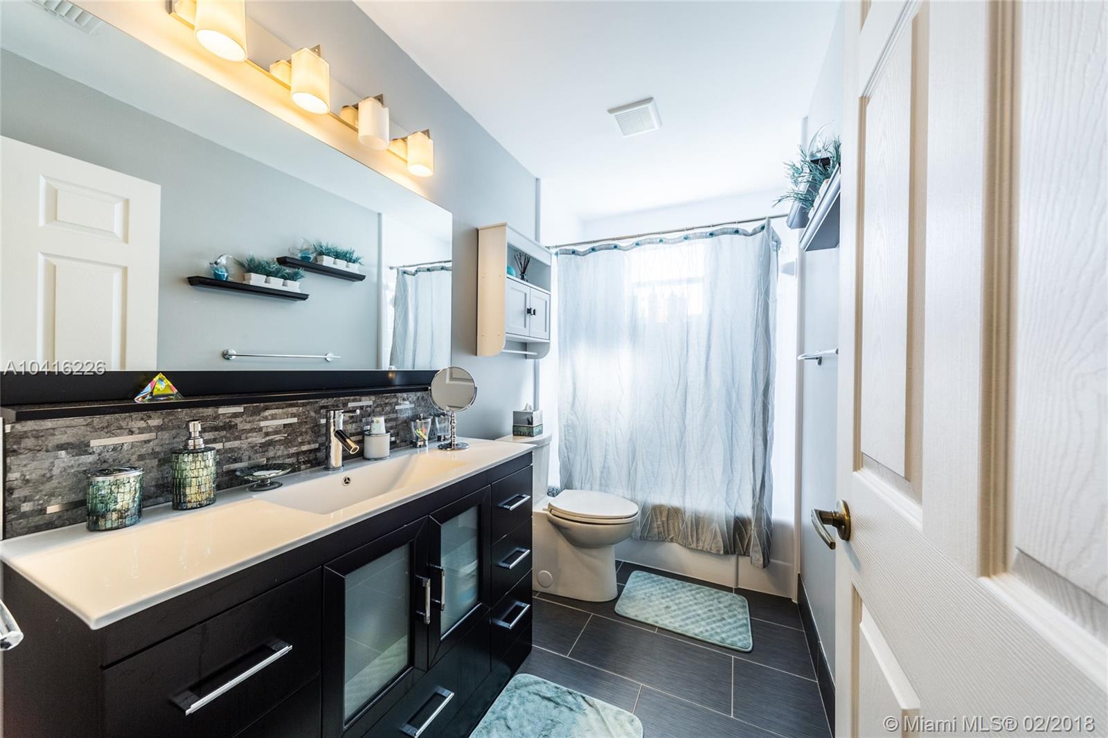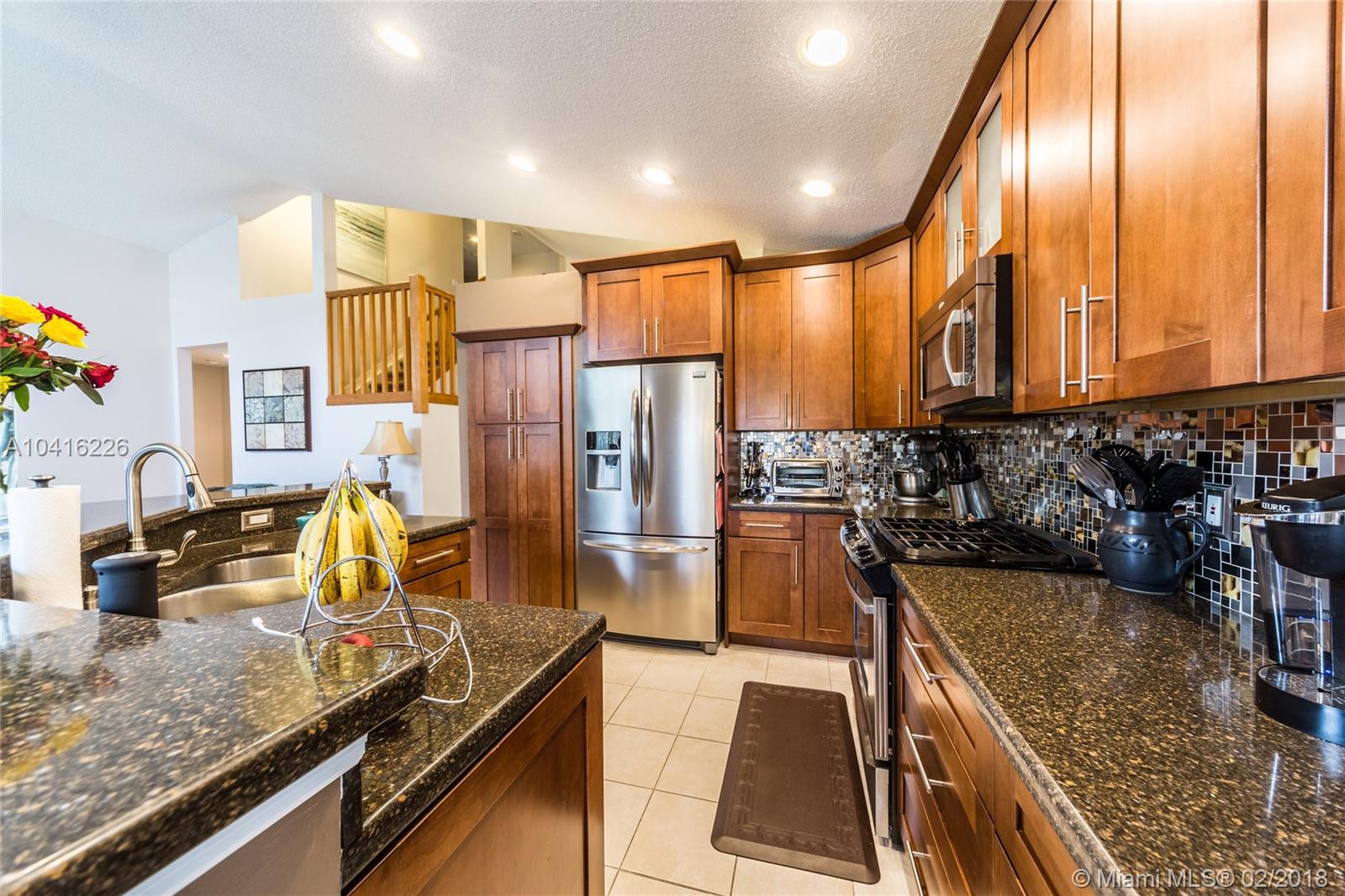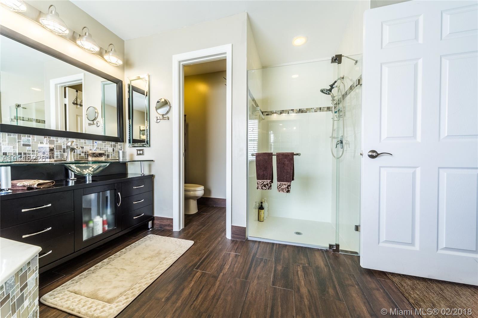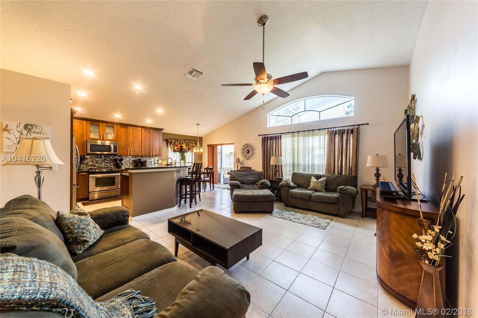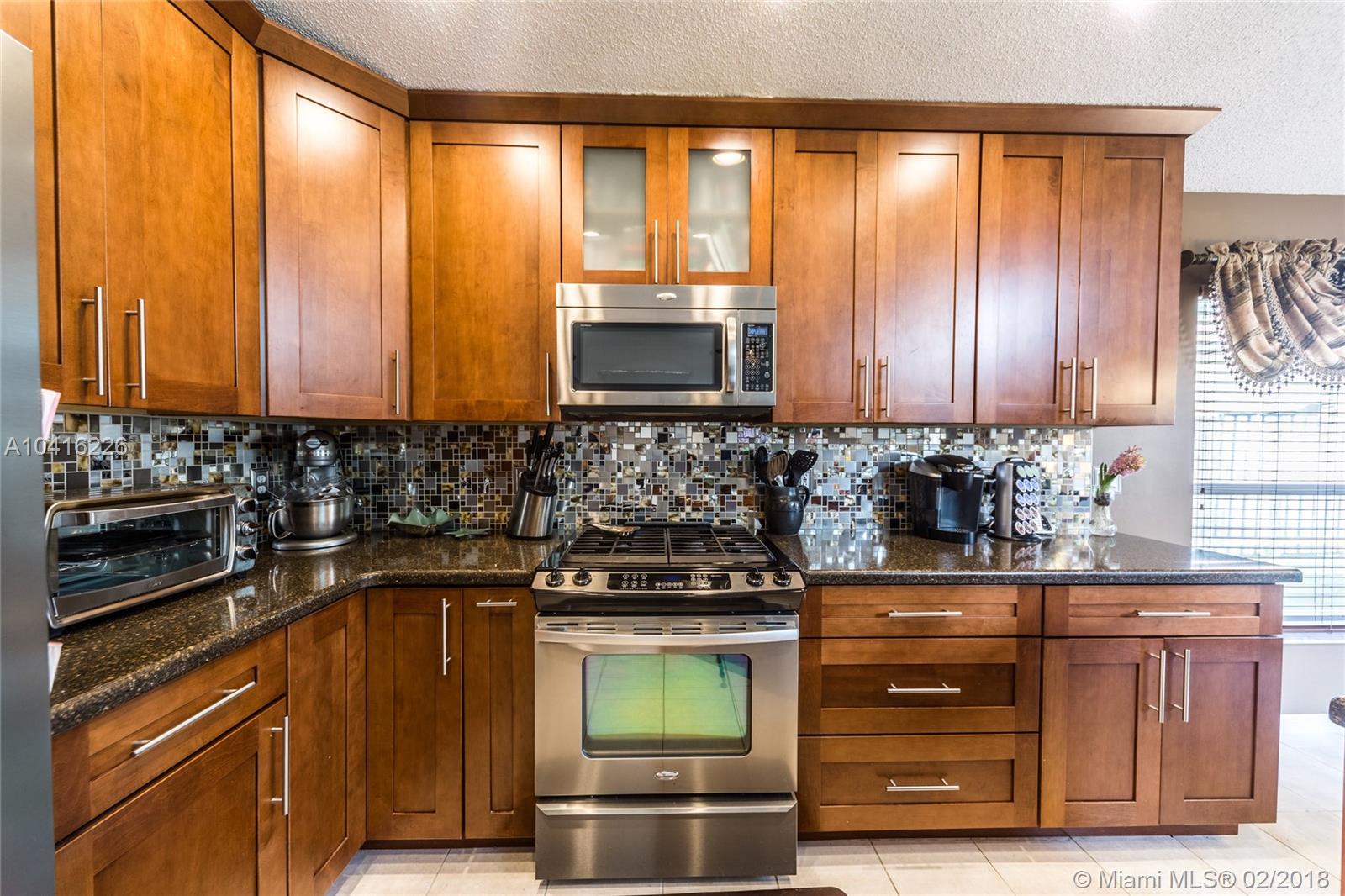 Beautiful turn-key 4 bedroom 2.5 bath two-story home in the highly desirable gated community of Pembroke Falls. Fully remodeled custom kitchen w/ stainless steel appliances, gas range, quartz countertops, dual sinks, and imported backsplash. Fully remodeled bathrooms including a five-piece master bath w/ porcelain tile, dual vanities, and frameless glass door shower. Screened in patio on a huge fenced in yard. Laundry room w/ Samsung washer/dryer and a 2-car garage. Master bedroom on 1st floor. Resort-style family living at its best with community clubhouse, swimming pool, tennis & basketball courts, and fitness center. HOA dues include portion of internet/cable, alarm, and amenities. Owners replaced all appliances, A/C, and water heater. Price reduced for quick sale! Must see!