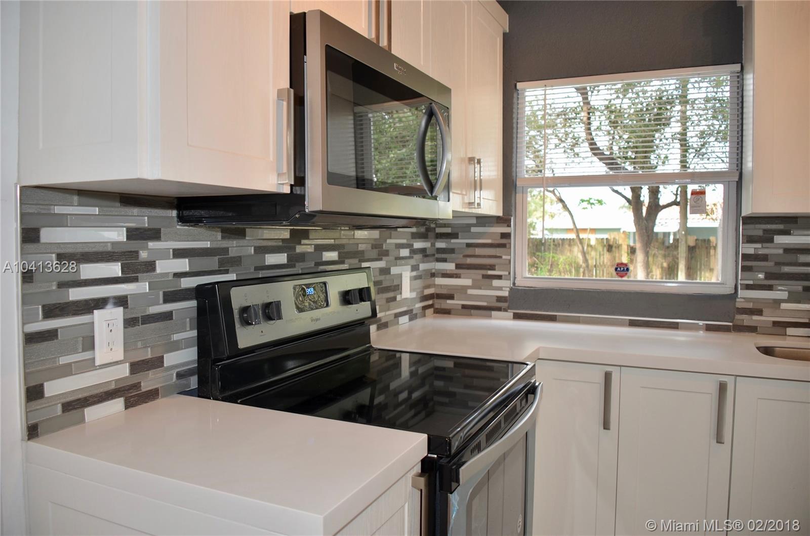 Completely remodeled 2 beds / 2 baths home, with all new flooring throughout, new HVAC Unit, fresh paint in and out and all new custom design kitchen and bathrooms. Featuring an open plan Main room with vaulted ceiling, new light fixtures and ceiling fan, wood look rectified porcelain floors, a completely new custom design kitchen, with white cabinets and all new Whirlpool stainless steel appliances. Wood laminate floors and ceiling fans w/lights in Bedrooms. Both baths rebuilt with porcelain floors. Master bath with huge shower. 2nd bath with bathtub. Utility/laundry room with terrazzo floor and new Whirlpool washer & dryer. Huge corner lot, with majestic trees that provide natural shade for a relaxing enclosed backyard. Close to shops, restaurants & public transportation. Easy to show.