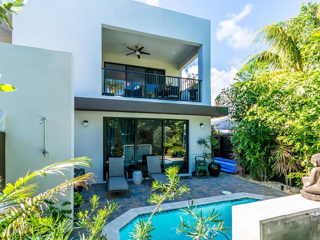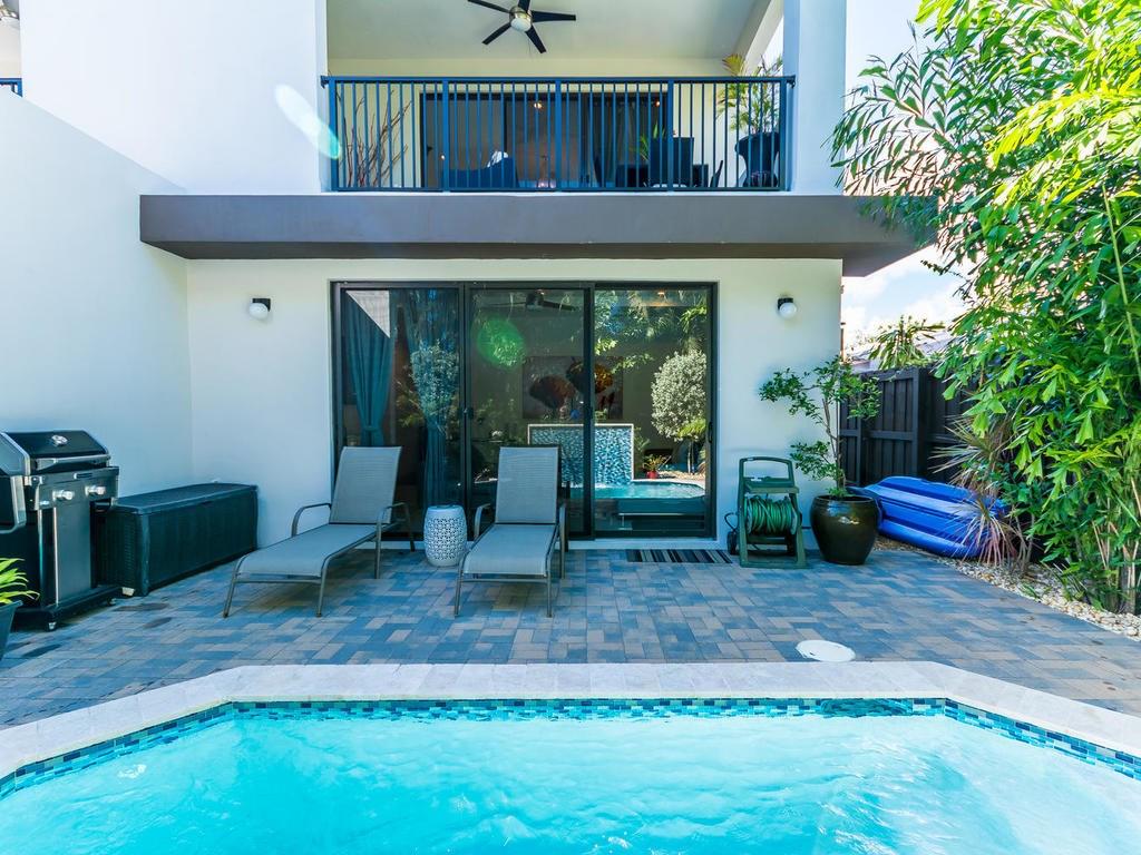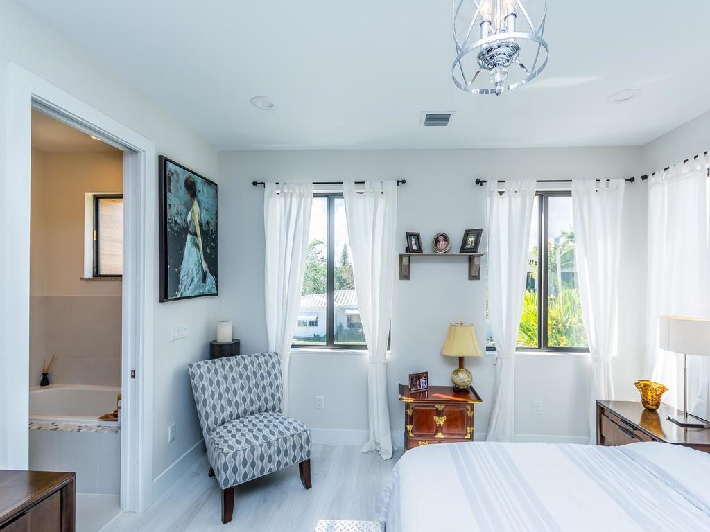 MAGNIFICENT MODERN 2 YEARS NEW DESIGNED GEM!!! 3/2.5 POOL HOME. FRENCH DOORS LEAD INTO YOUR GRAND FOYER WITH 22FT CEILINGS, EXQUISITE FIRST FLOOR HAS PORCELAIN TILE WITH TWO BEDROOMS, MEDIA ROOM WITH WET BAR THAT OPENS TO YOUR POOL A TROPICAL PRIVATE OASIS.THE GRAND STAIRCASE LEADS TO DRAMATIC REVERSE FLOOR PLAN WITH LIVING, KITCHEN AND STUNNING MASTER SUITE ON SECOND LEVEL WITH PLANKED FLOORING.DESIGNER KITCHEN HAS QUARTZ COUNTER TOPS, GLASS SLIDERS OPEN TO YOUR BALCONY OVER LOOKING THE POOL. A MUST SEE!