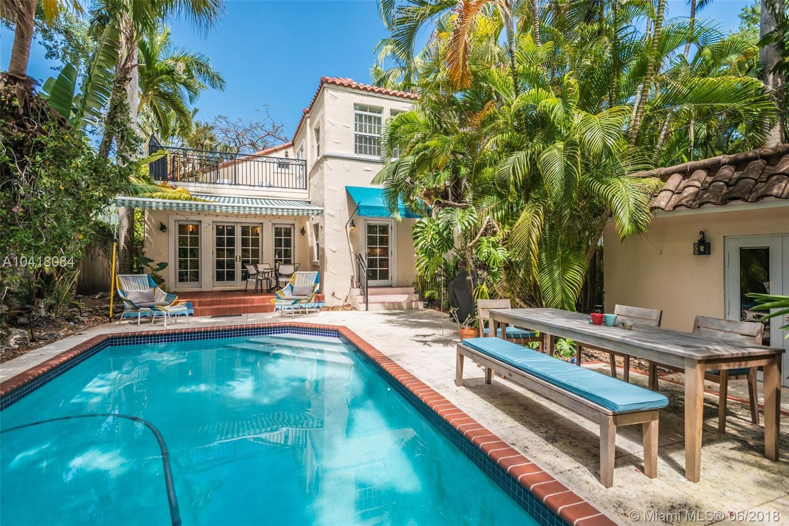 Coconut Grove gem. Enjoy the sophisticated, chic lifestyle of the historic Coconut Grove neighborhood. Beautifully renovated home on quiet street lined with oak trees. Centrally located, minutes from Downtown and Brickell, Key Biscayne, Cocowalk, and Kennedy Park. Elegant living with high volume ceilings and original fireplace. Impact windows, hardwood floors, impecable details. Second floor master bedroom has balcony overlooking the pool. Open kitchen with Carrara marble island and countertop, two ovens, gas range, and wine cooler. Great outdoor area for entertaining - salt water heated pool framed in lush tropical gardens. New barrel roof. California closets. Main house is 3/3. Guest house has separate entrance 1/1 renovated with tile floors, complete kitchen and beautiful bathroom.