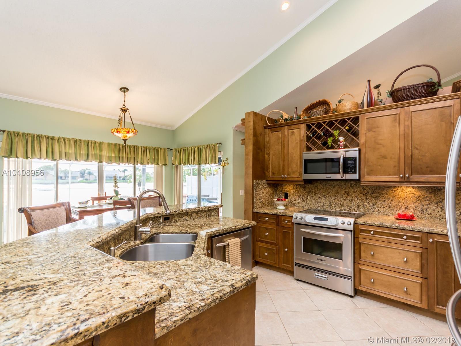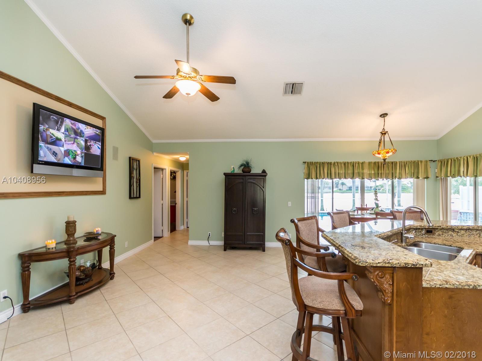 Amazing single family home in the heart of Pembroke Pines The Sapphire Model is one of the most sought after floor plans in Spring Valley. Kitchen has been upgraded with granite, new wood cabinets, matching Bar Stools & stainless steel appliances. Ceramic Tile and Pergo floors throughout. Formal Dinning Rm. Living Rm. & Family Rm. with Crown Molding Separate Washer/Dryer Laundry Rm with plenty of built in storage cabinets. Covered patio with screened in Salt Water Heated pool & spa overlooking the lake with large back yard and Fire Pit. Home has a Lorex Security Surveillance system with a 50” Plasma TV, 8 Cameras & Ring Door Bell. 2 car garage with extra wide driveway. Hurricane panels for all windows. Home has been very well maintained by owner and is in excellent move in condition.
