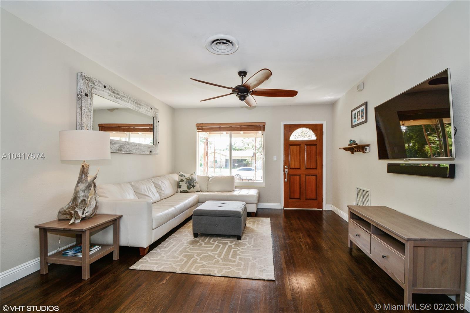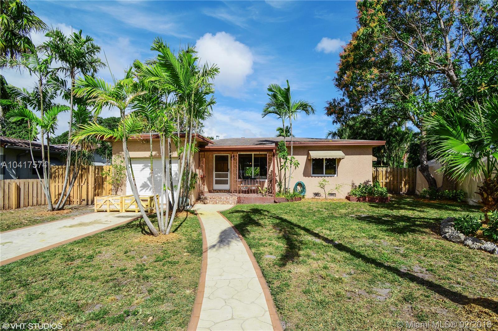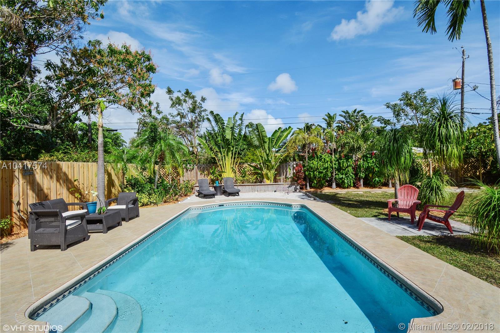 Tropical oasis awaits!!! This home has been restored and renovated to reflect a true Florida feel. Wood flooring in living/dining room and bedrooms. The bright gourmet kitchen has been totally renovated. Samsung SS appliances, deep, double SS sink, granite counter-tops, under counter lighting with pool and garden views! Bathrooms have been renovated. Impact windows. Large laundry room with washer/dryer and plenty of storage space. Newer A/C and water heater. Inviting sun room leads you to your own private pool with deck, sandy beach area and extensive landscaping. The 10,000+ sq. ft. yard is beautifully landscaped with fruit trees, orchid trees, swaying palms, a tree house and is completely fenced for privacy. No need to look further!! This is the one you have been waiting for!!!